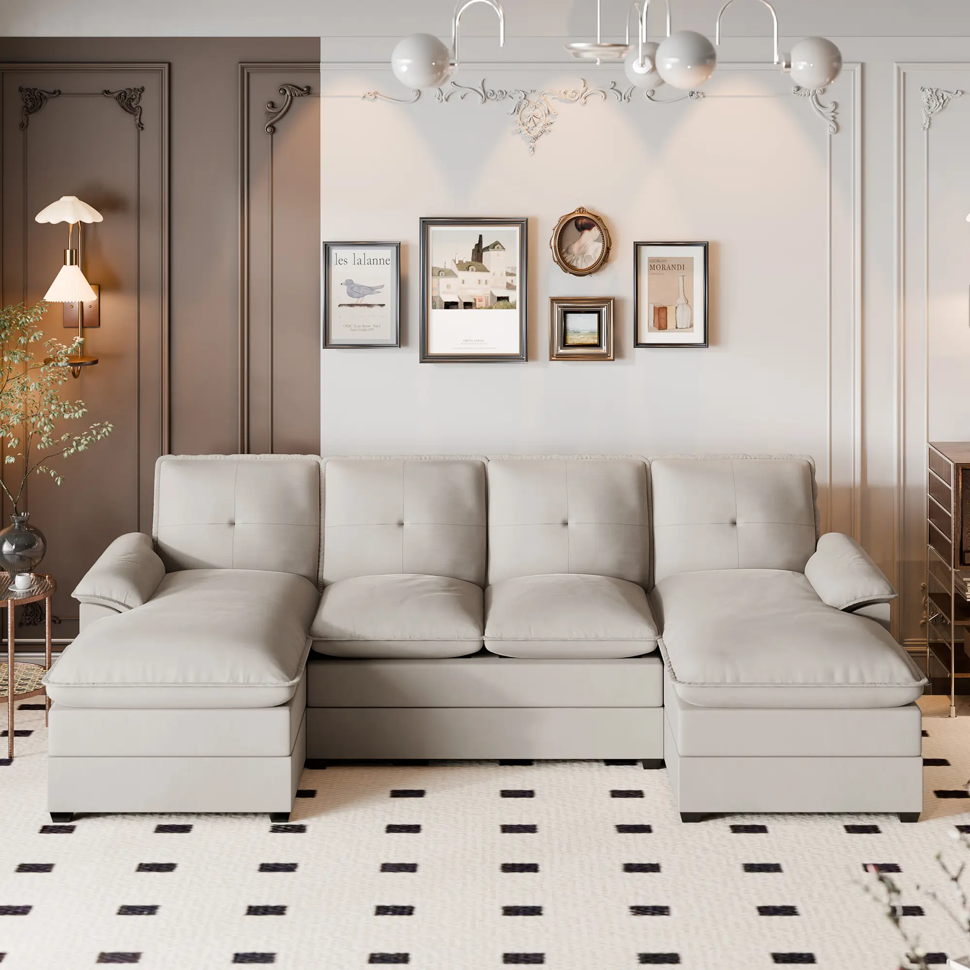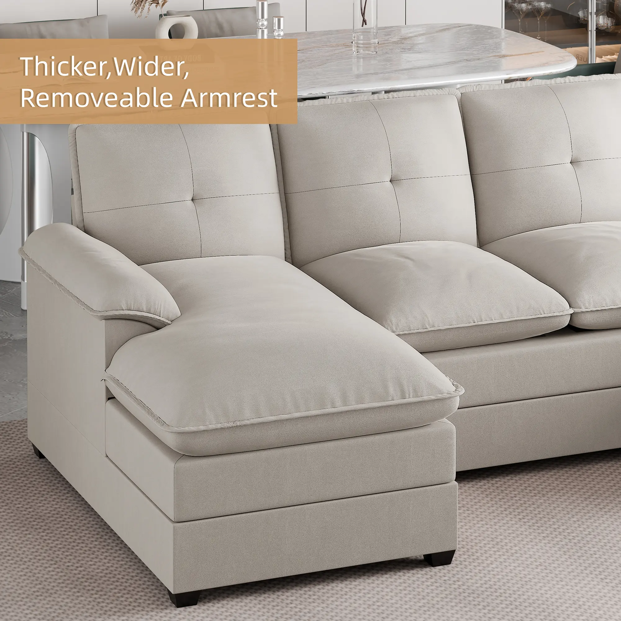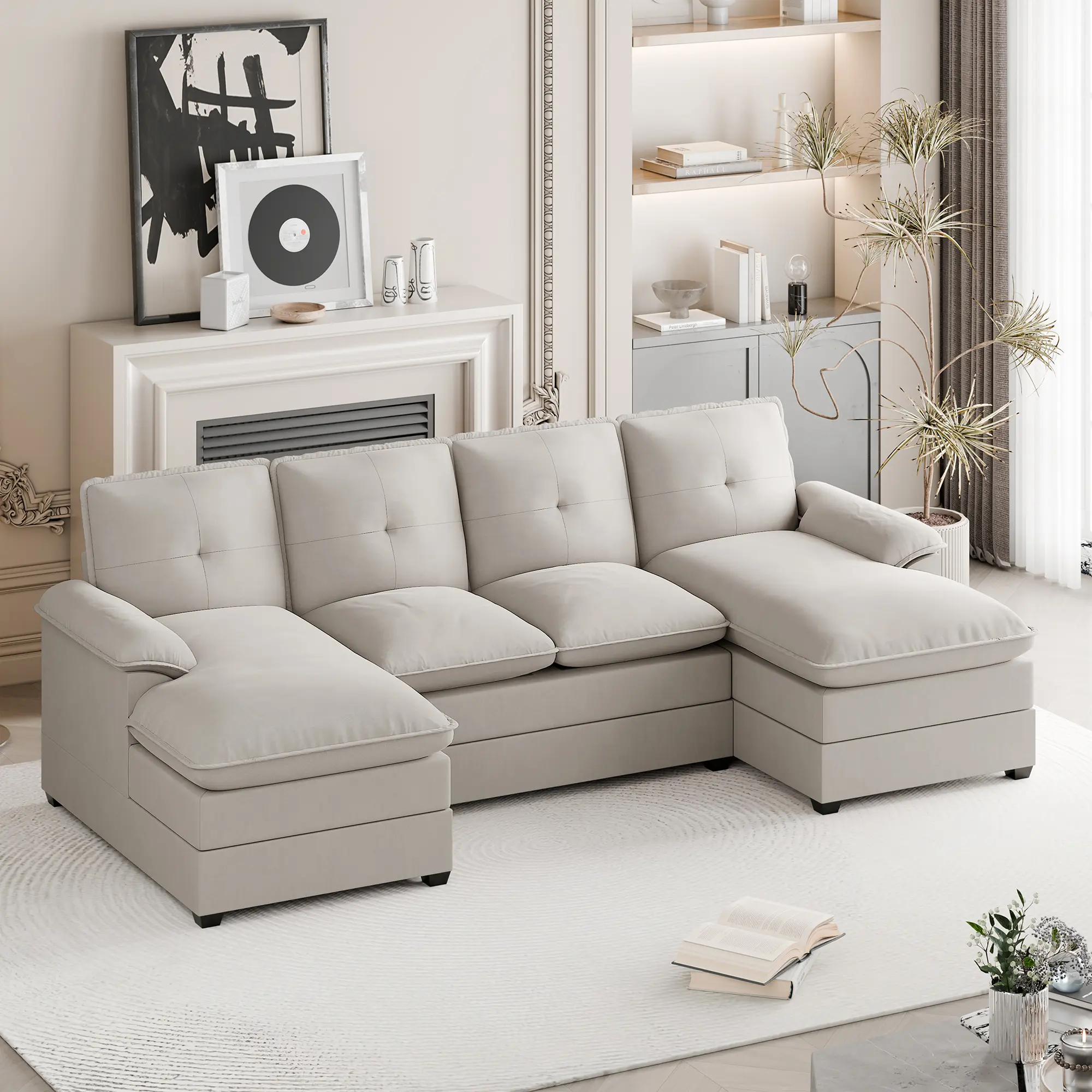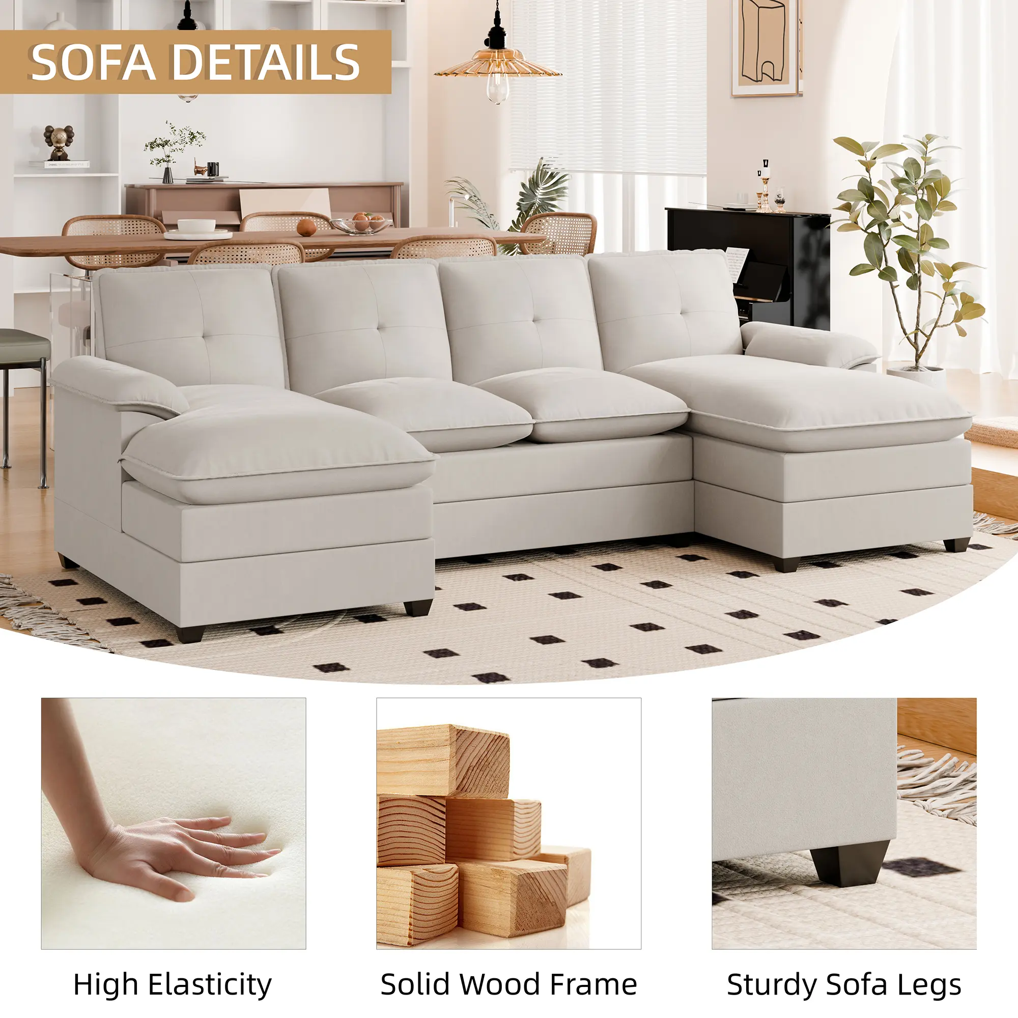 ·Soft and comfortable: This 4-seater sofa comes with a double padded cushion that is as soft as a cloud and firmly supported. The spacious U-shaped layout offers plenty of seating. Whether you are relaxing alone or entertaining friends, this comfy sofa will provide you with a comfortable experience.