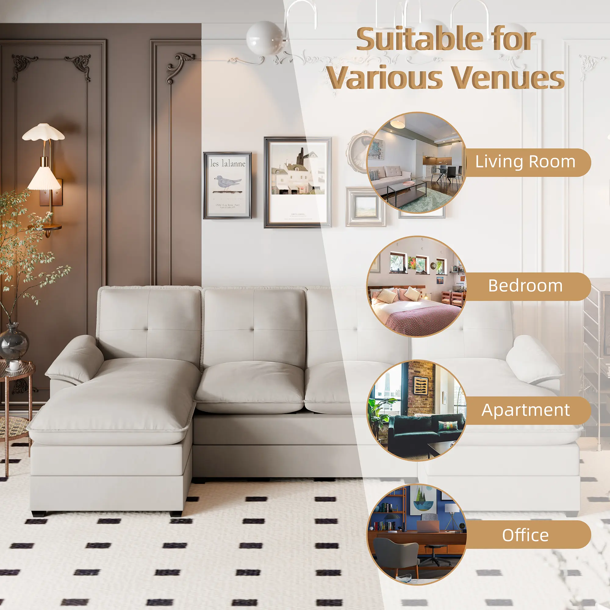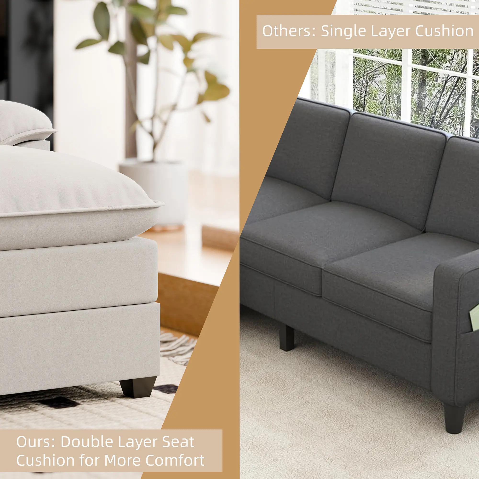 ·Solid construction: This modern living room sectional sofa is built with a solid wooden frame. Its sturdy construction provides excellent stability and support, ensuring that it is always the focal point of your home.