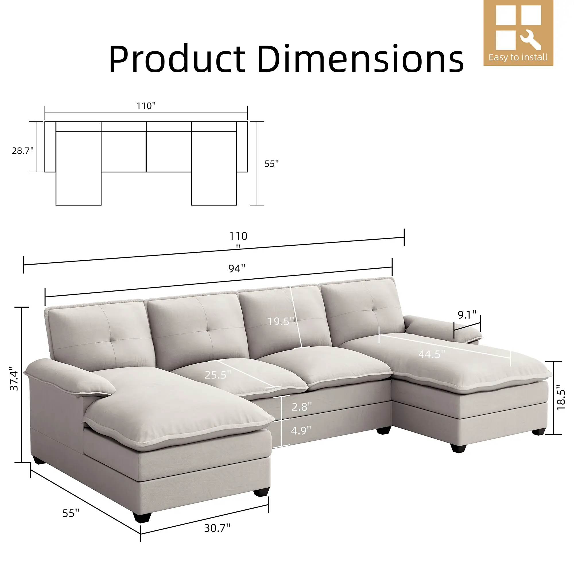 ·Overall dimensions: 47 inches (length) x 110 inches (wide) x 55 inches (high)