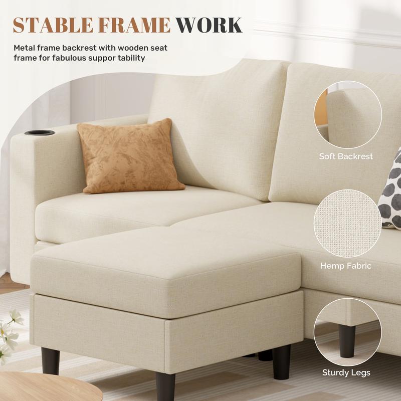 ·REVERSIBLE OTTOMAN:This modular sectional sofa comes with a reversible ottoman that can be placed on either side to create a personalized sectional couch or L-shape sofa, giving you flexibility to adjust based on your space.
