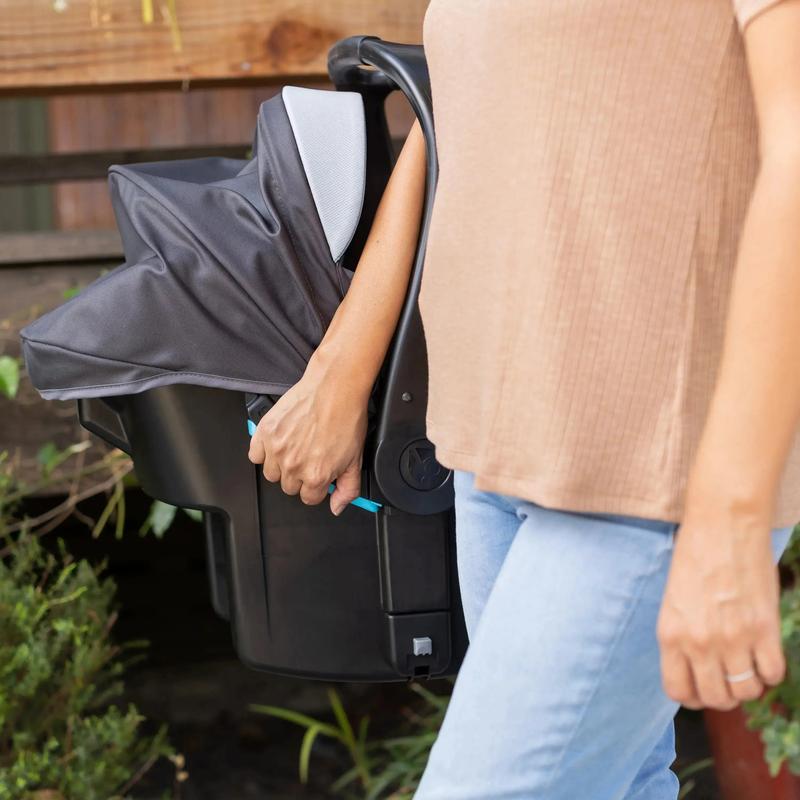 Car seat installation is quick and effortless with push-on LATCH connectors with easy use indicators. The integrated, no-twist indictors are included on the harness straps for no fuss when buckling in your little one. The four recline position base has a bubble level indicator for a convenient way to find the perfect angle for your baby. For added safety, the carry handle can be used as an anti-rebound bar in the forward position. The grow-with-me inserts and premium soft goods offers elevated support and comfort for your baby as they grow and develop. An adjustable canopy provides coverage and sun protection, to ensure your little one is as comfortable as possible.