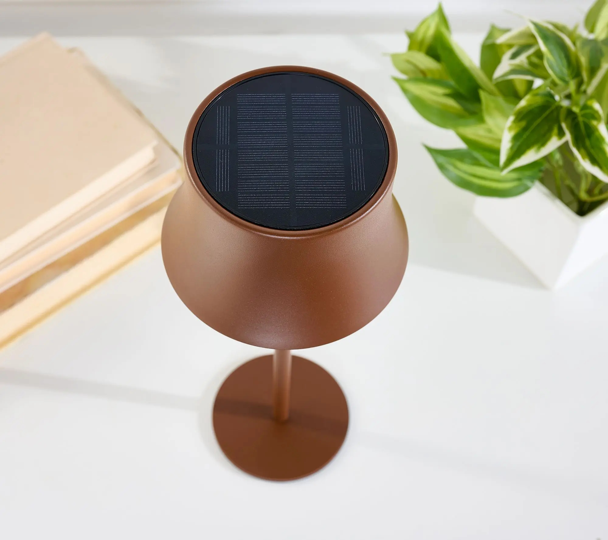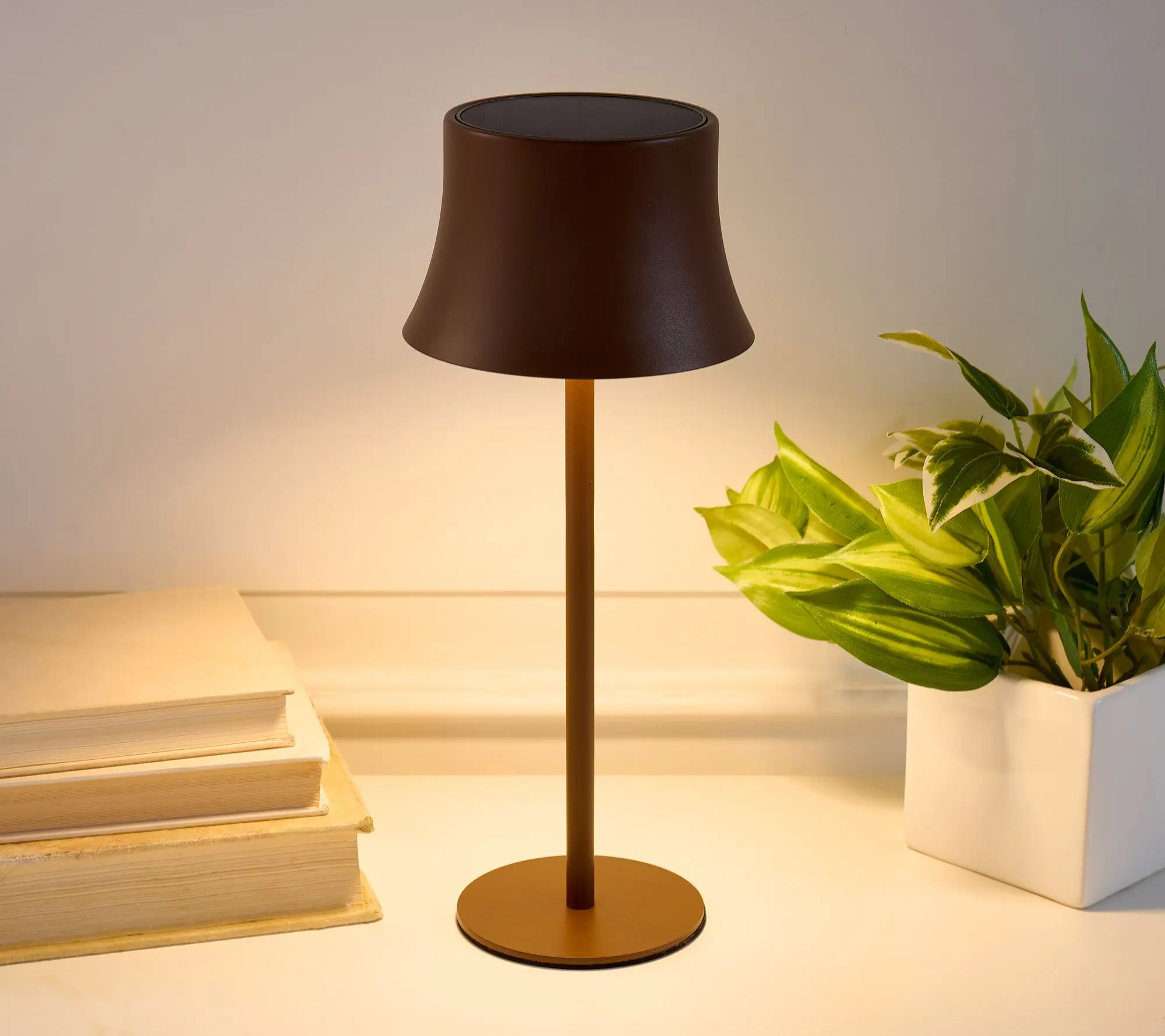 5. SecureBrite 13" Solar Indoor/Outdoor Lamp with Metal Shade