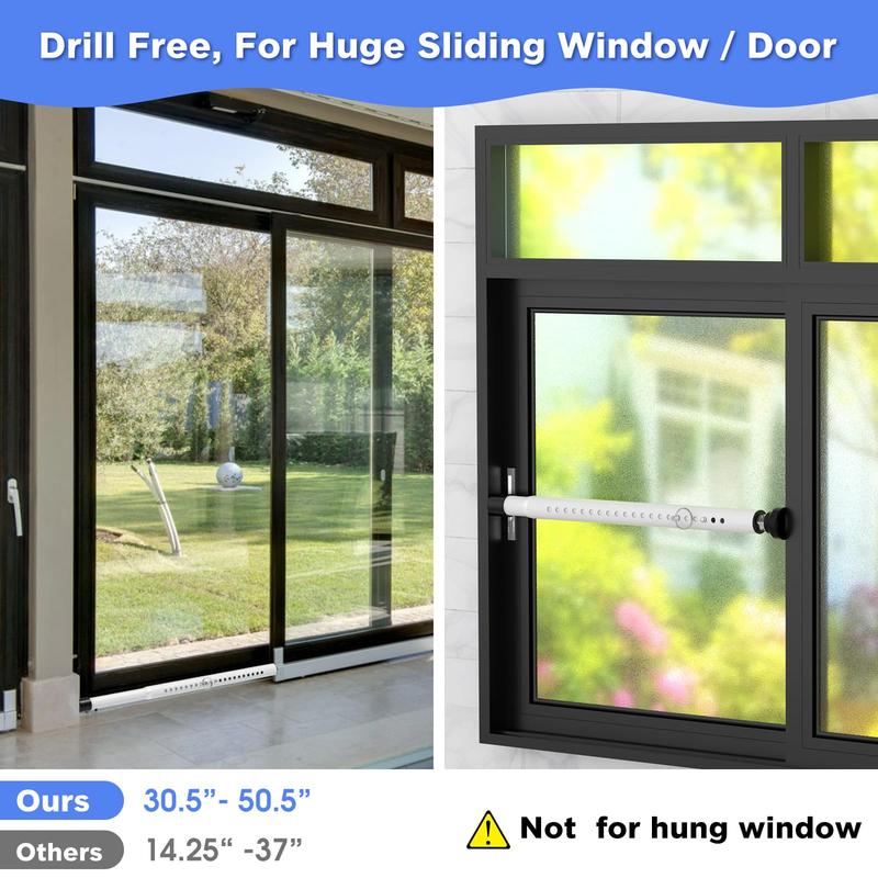 【Adjustable】The window safety locks can be adjusted from 17 to 50 inches for greater adaptability, and the latch design allows for easy adjustment to fit the size of your window, and can be used on most regular and huge windows or sliding doors.