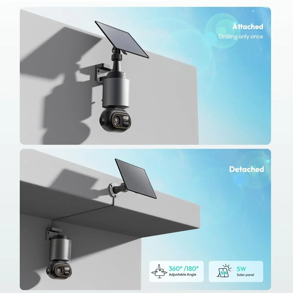 ·Solar-Powered: External solar panel powers the camera all day.