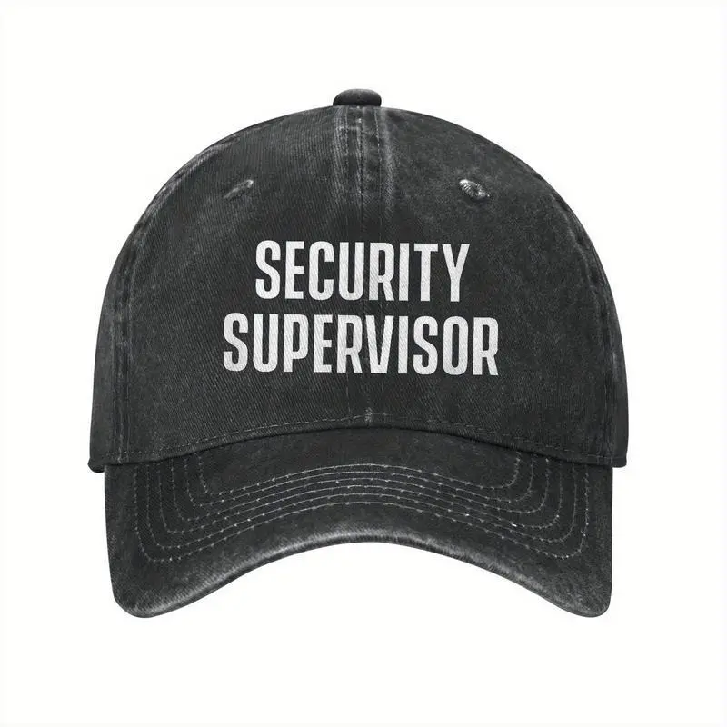 Security Supervisor Baseball Cap - Bold Text Print Black Hat with White Lettering, Structured Front Panel & Pre-Curved Visor for Security Staff, Events, Casual Workwear, Security Officer Accessories