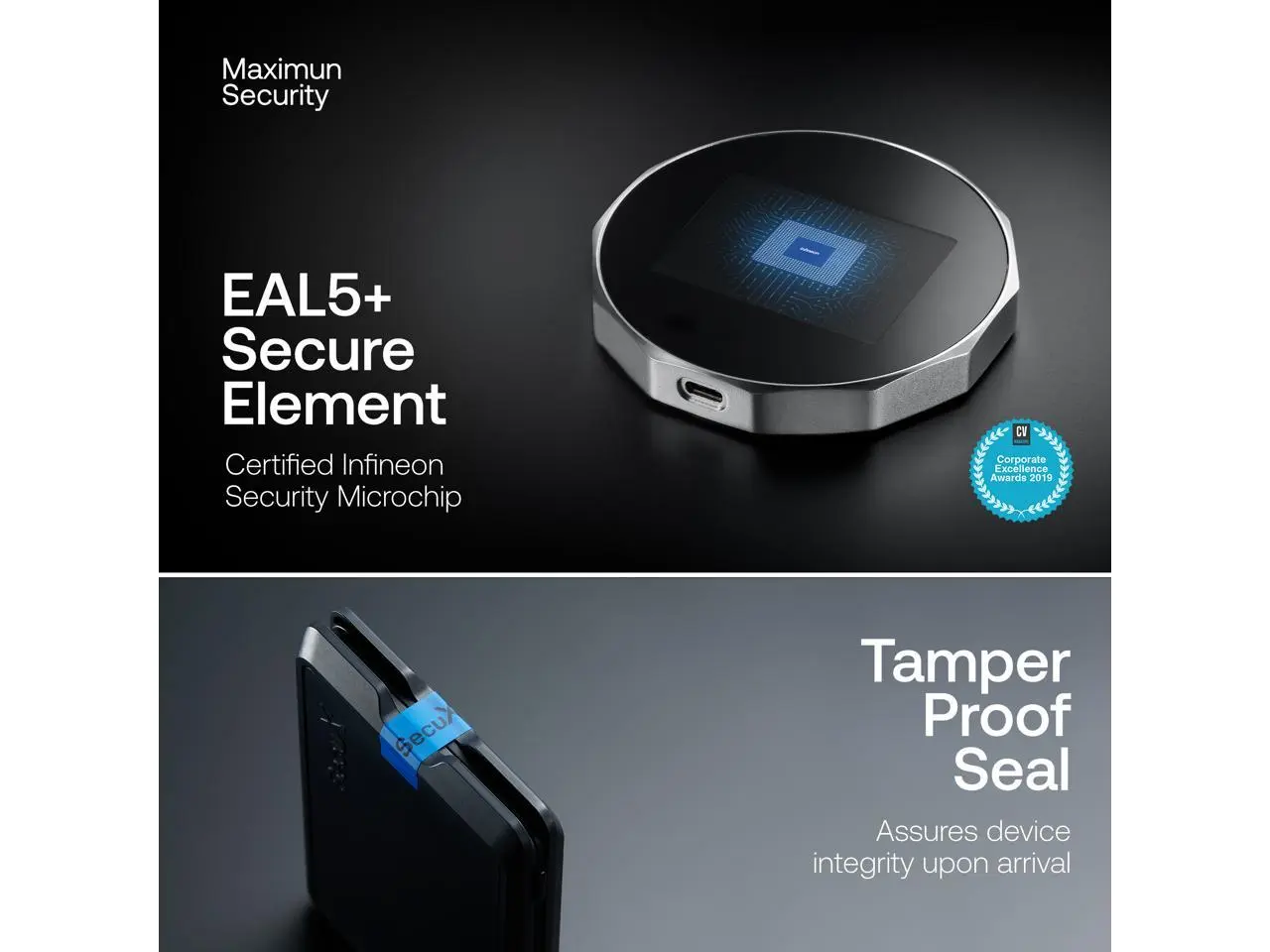 : SecuX V20 cryptocurrency hardware wallet has the comprehensive security functions: from a strictly regulated production chain, aluminum alloy housing design, built-in military anti-hacking chip, tamper-proof firmware upgrade, dual authentication transaction process and tear-proof packaging, 360-degree protection can ensure that your cryptocurrency assets are safe and impregnable!