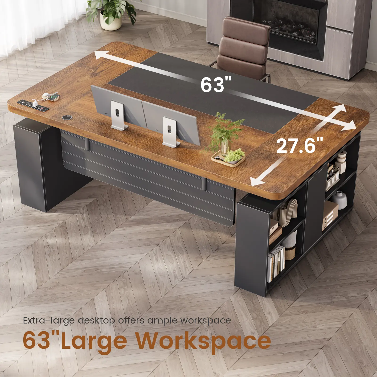 SEDETA 63 Inch Executive Standing Desk Electric Height Adjustable Computer Office Desk with Storage Shelves Power Outlets Privacy Panel