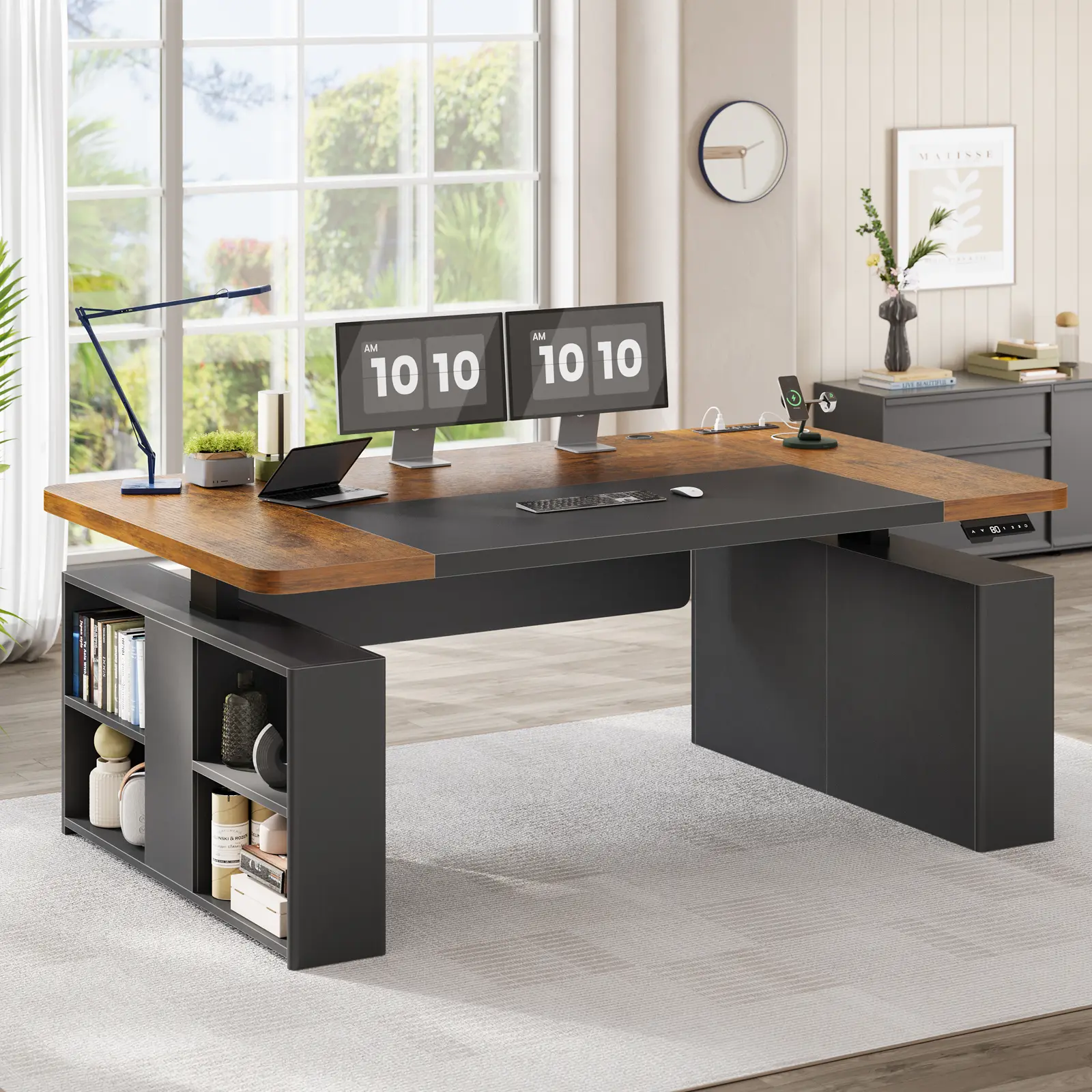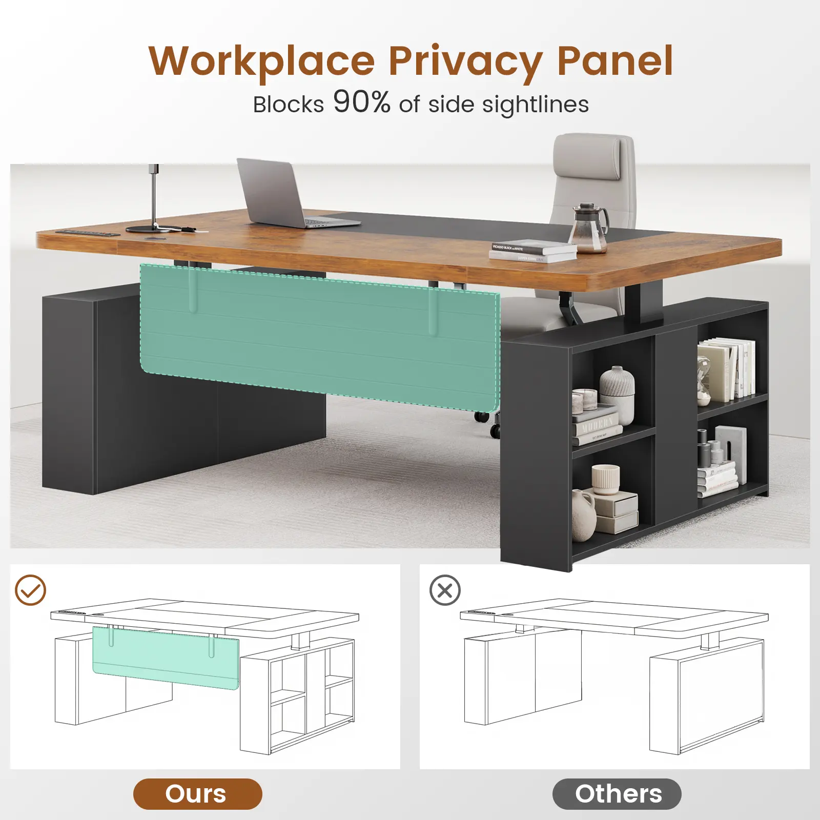 SEDETA 63 Inch Executive Standing Desk Electric Height Adjustable Computer Office Desk with Storage Shelves Power Outlets Privacy Panel#worklife #homeoffice #workfromhome #businessowner #business