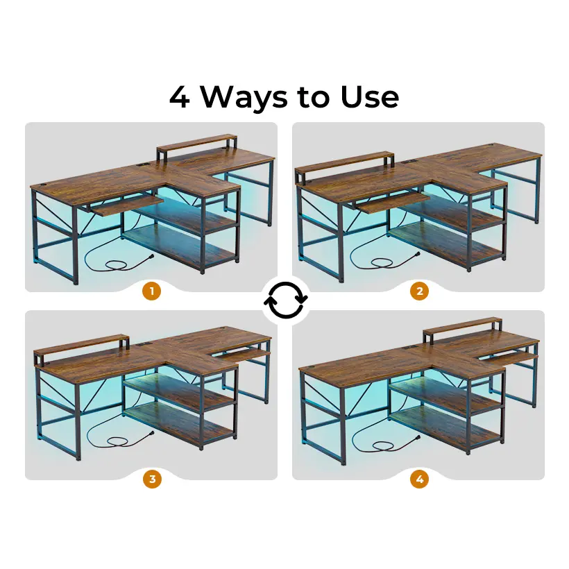 【What can you get?】 2 person desk + printer stand with storage + 94.5" LED light + power strip with USB interface + keyboard tray + monitor stand. This multifunctional two person desk is convenient for 2 people to use at the same time, and can communicate at close range without disturbing each other. Perfect as computer desk, 2 person desk, home office desk, gaming desk, office desk.