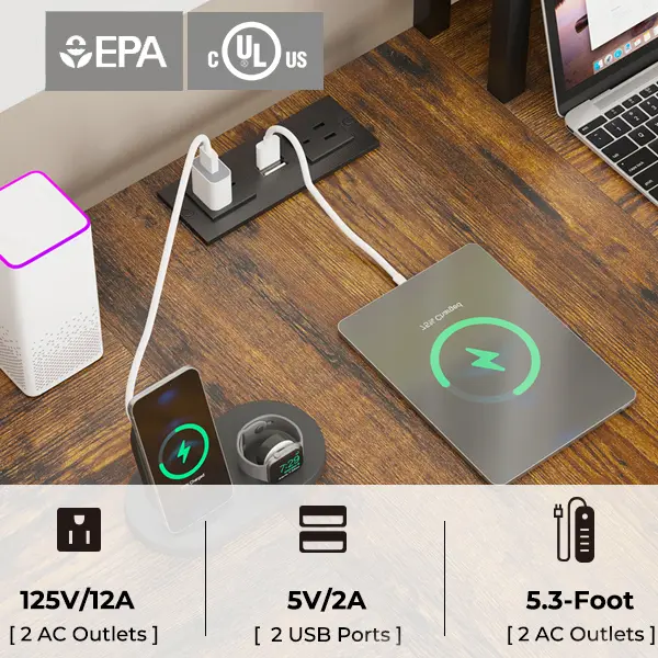【Multifunctional】Equipped with 2 AC outlets and 2 PowerIQ-enabled USB charging ports to provide power for up to 4 devices simultaneously. The keyboard tray is ideal for 108-key or 87-key keyboard + mouse, which can free up more desktop space. The monitor stand can easily raise 2 monitors to a suitable height, reducing the tension and pain of the back and neck.