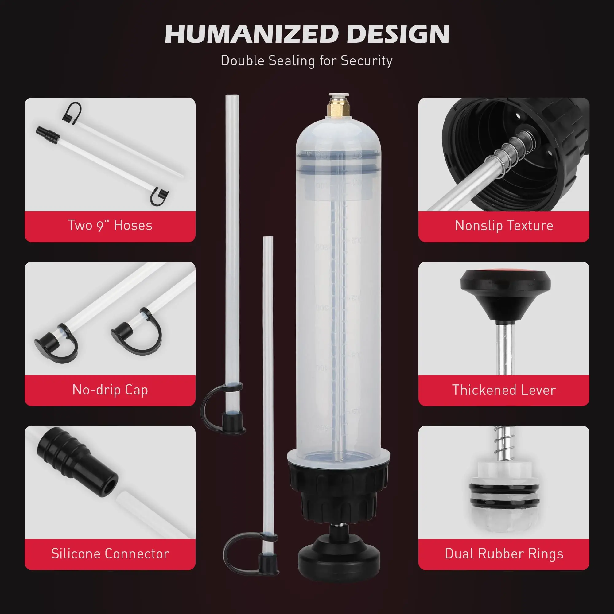 ·LEAK-PROOF DESIGN - Featuring a double-sealed plunger and dual rubber ring, this fluid extractor offers airtight suction. Its precision threading prevents leakage, ensuring clean and efficient fluid handling.