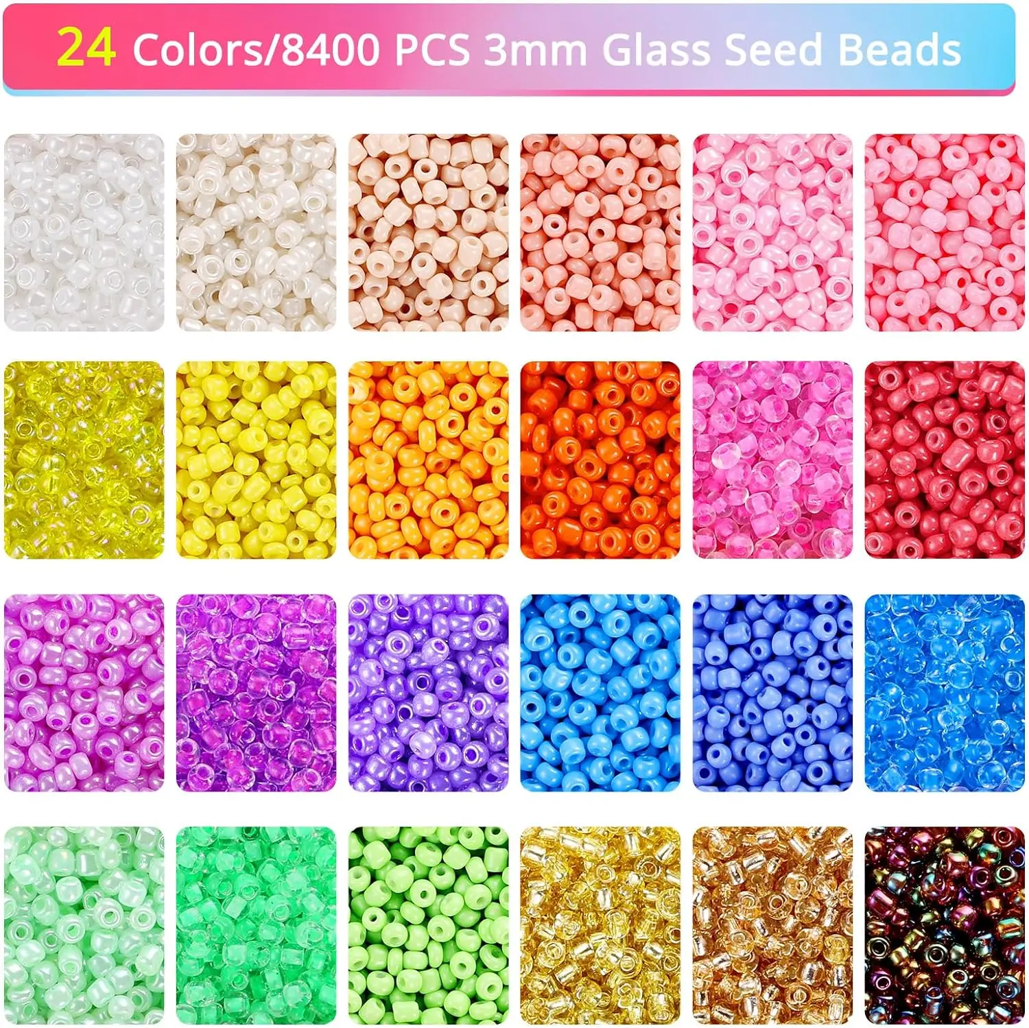 ·【Beautiful Colors】: These 4mm seed beads kit comes in 24 different colors, including solid color, transparent color, pearl color, sparkle color. Each color is totally different and bright, so everyone will find their own color to make necklaces, bracelets, rings, earrings, key chains, eyeglass chains, mobile phone lanyards, hair braid and other DIY craft you want.