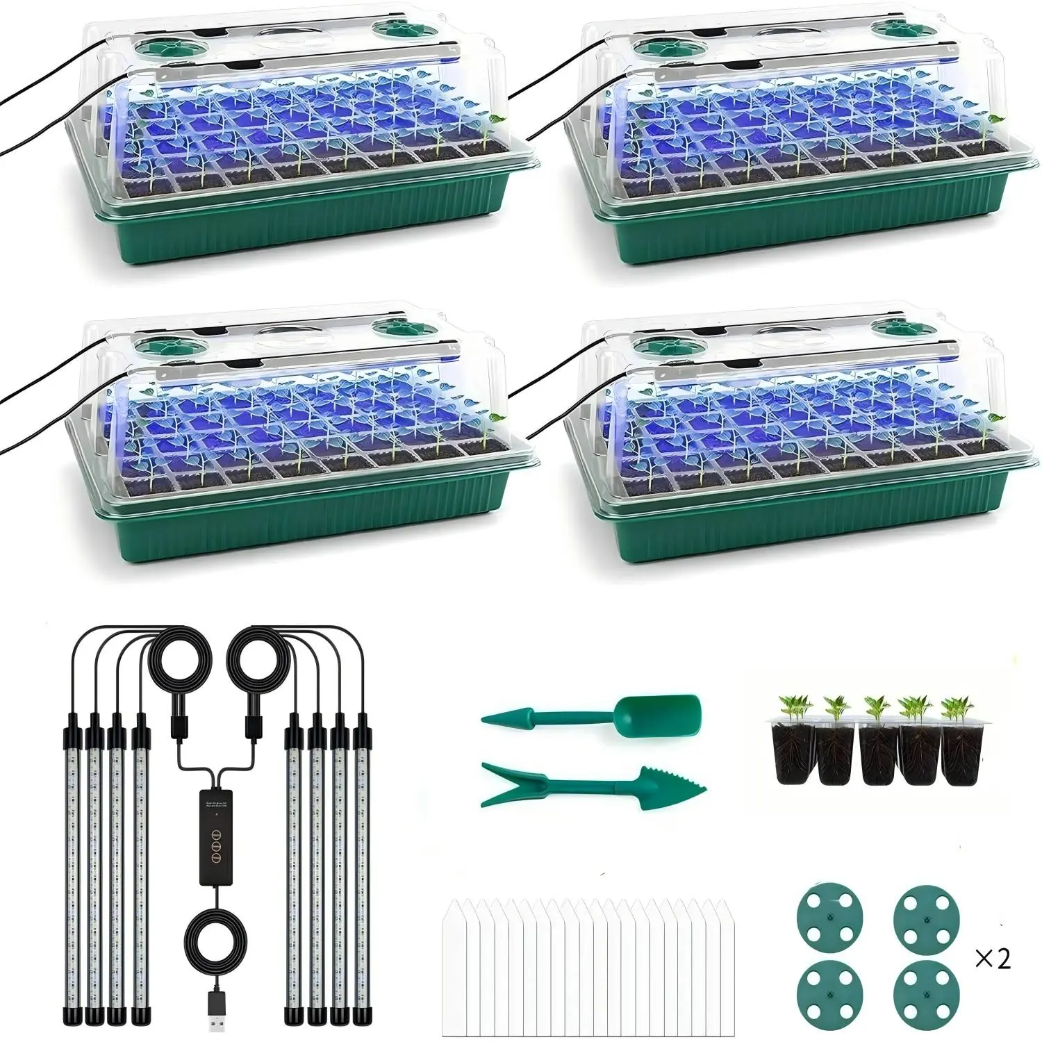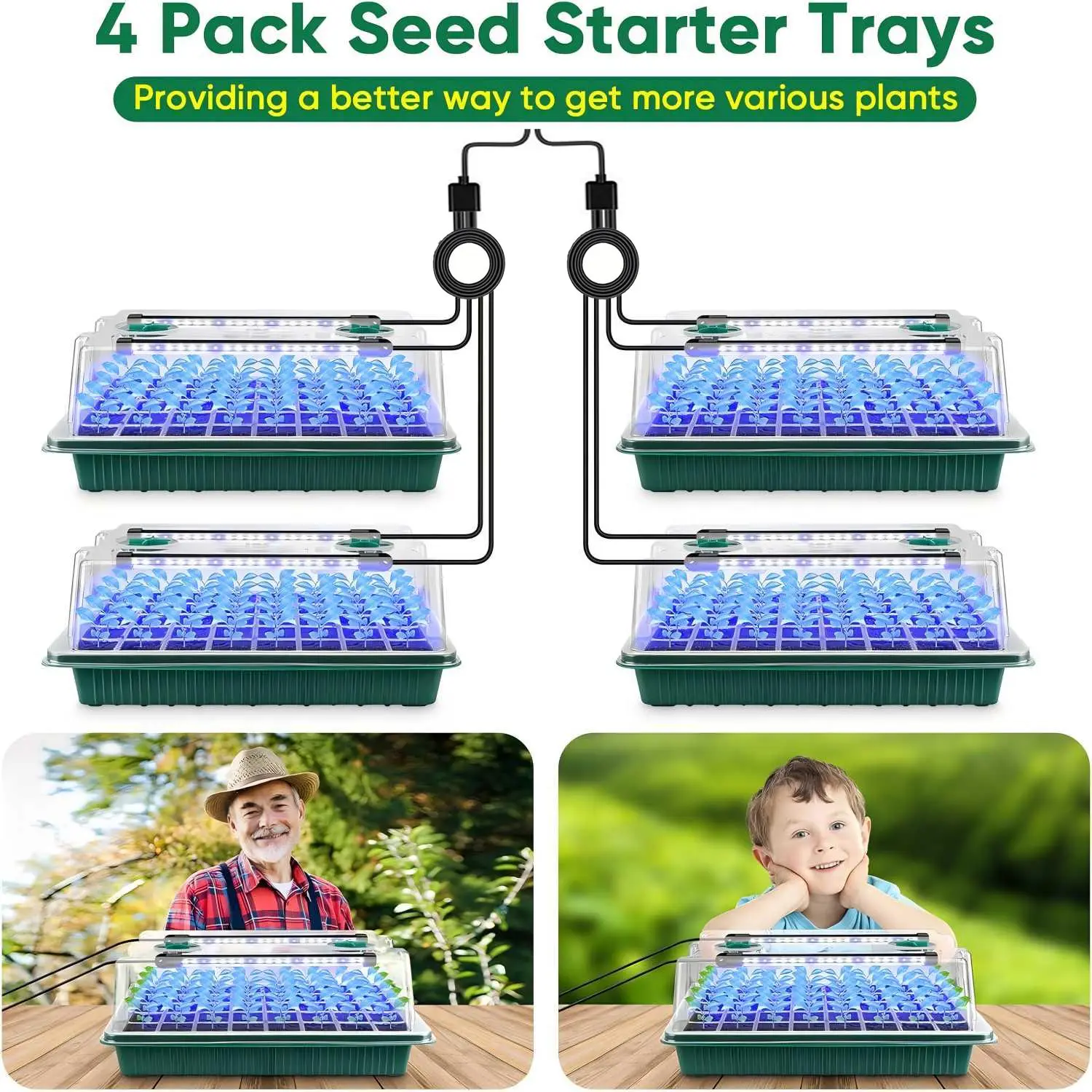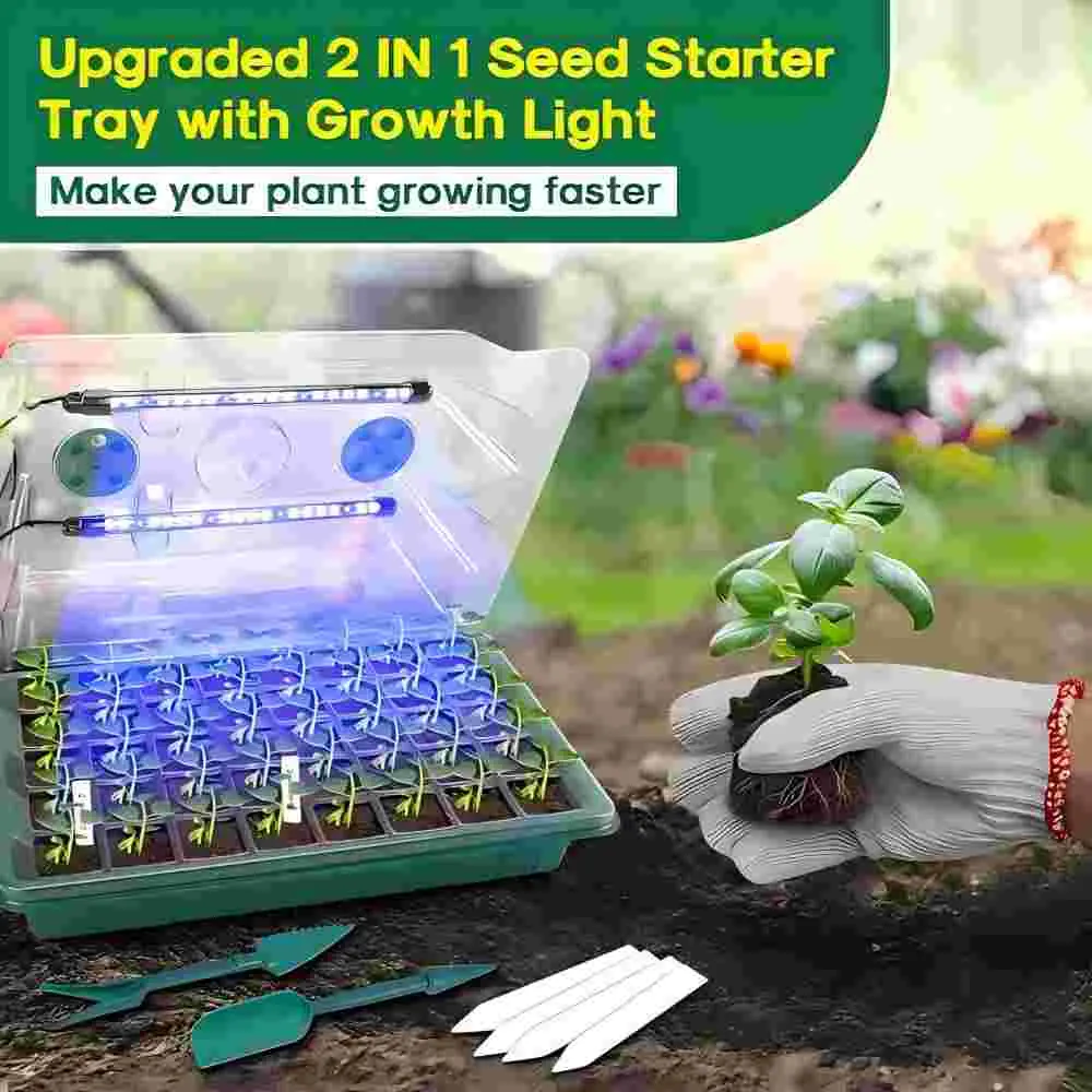 [Premium Full Spectrum Plant Lighting & Humidity Control]: Our seeding starter trays, each equipped with dual adjustable plant lights, provide customized illumination perfect for every phase of seedling growth. Seamlessly adjust light intensity and duration to stimulate rapid, vigorous development, resulting in strong, healthy plants. With 8 adjustable vents integrated into each cover, managing airflow becomes effortless, allowing you to fine-tune temperature and humidity levels specific to each