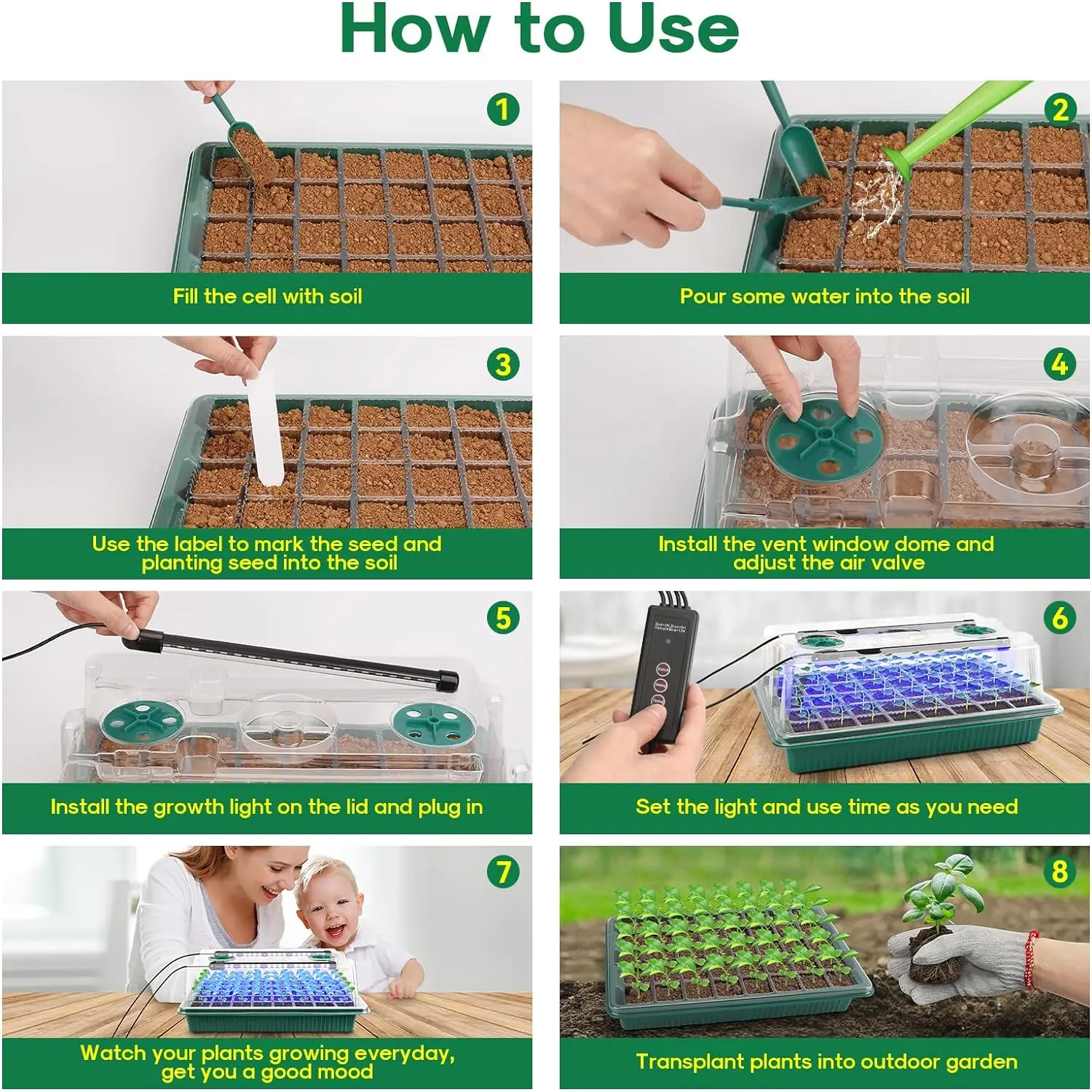 [Versatile Use]: Our seedling trays serve as the ideal starting point for a diverse array of plants, encompassing flowers, vegetables, fruits, tomatoes, and more. They not only foster excellent growth conditions but also invite you to embark on a rewarding home gardening journey with your family.