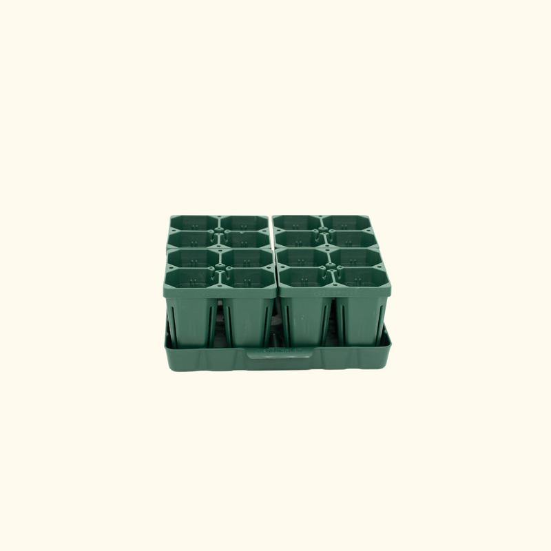 Overview You can ensure great seed-starts and propagations with Vego Garden’s innovative Seedling Suite products, and what better way to begin than with a bundle deal! Seedling bundles include everything you need to get your seedlings started, and can be customized to your needs. Start with a 10 x 10 in bottom tray, and then select the Seedling Tray size you prefer - all Standard size or all Jumbo size!  Highlights Seedling Trays feature innovative watering channels for gentle watering Stackable for neat, easy storage Each component is built to last a lifetime Dimensions Bottom Tray: 10" x 10" Seedling Trays: Top width: 5" x 5" Bottom width: 4.75" x 4.75" Cell depth: 2.75" or 4” Individual cell width: 1" x 1" or 2.5” x 2.5” Materials Bottom & Seedling Trays: Injection-Molded PPE Plastic