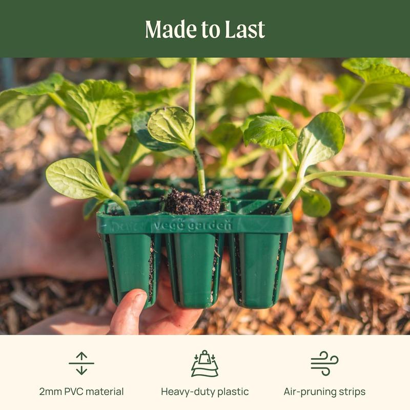 ·【Made of High-quality Thicken 2 mm Material】Vego Garden seed trays use 2mm PVC material, stronger and not easy to deform, can be reused many times. The thickened bottom edge material that can withstand the pressure, it would not lose soil or soak up too much water, and effectively cultivate seeds