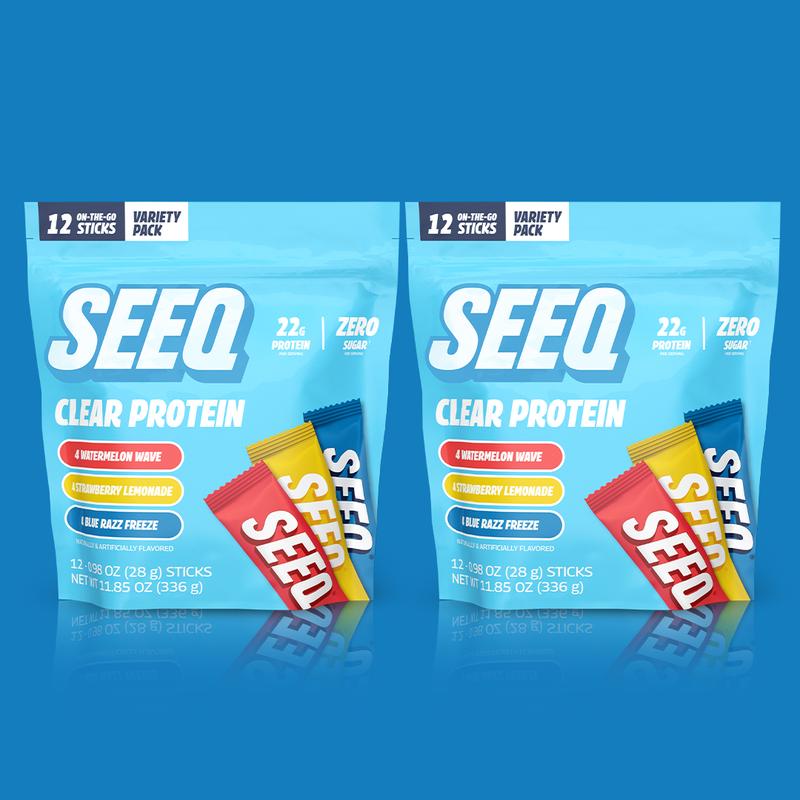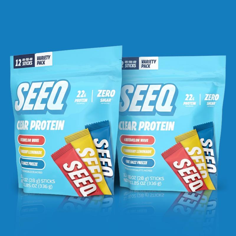 Say goodbye to heavy, milky shakes! SEEQ Clear Protein offers a refreshing way to fuel your day. Our NEW variety pack features three bold, fruity flavors: Blue Razz Freeze, Strawberry Lemonade, and Watermelon Wave. Finding your favorite has never been easier. Designed for life in motion, this protein fits seamlessly into your routine, whether you're hitting the gym or running errands.