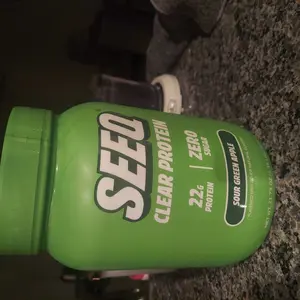 I actually love this brand. That’s the only kind of protein brand that I can go straight through and use all of the product. This is my first time trying the sour green apple, but this is my favorite. The only thing that I don’t like is That is only a half a container for how much I paid