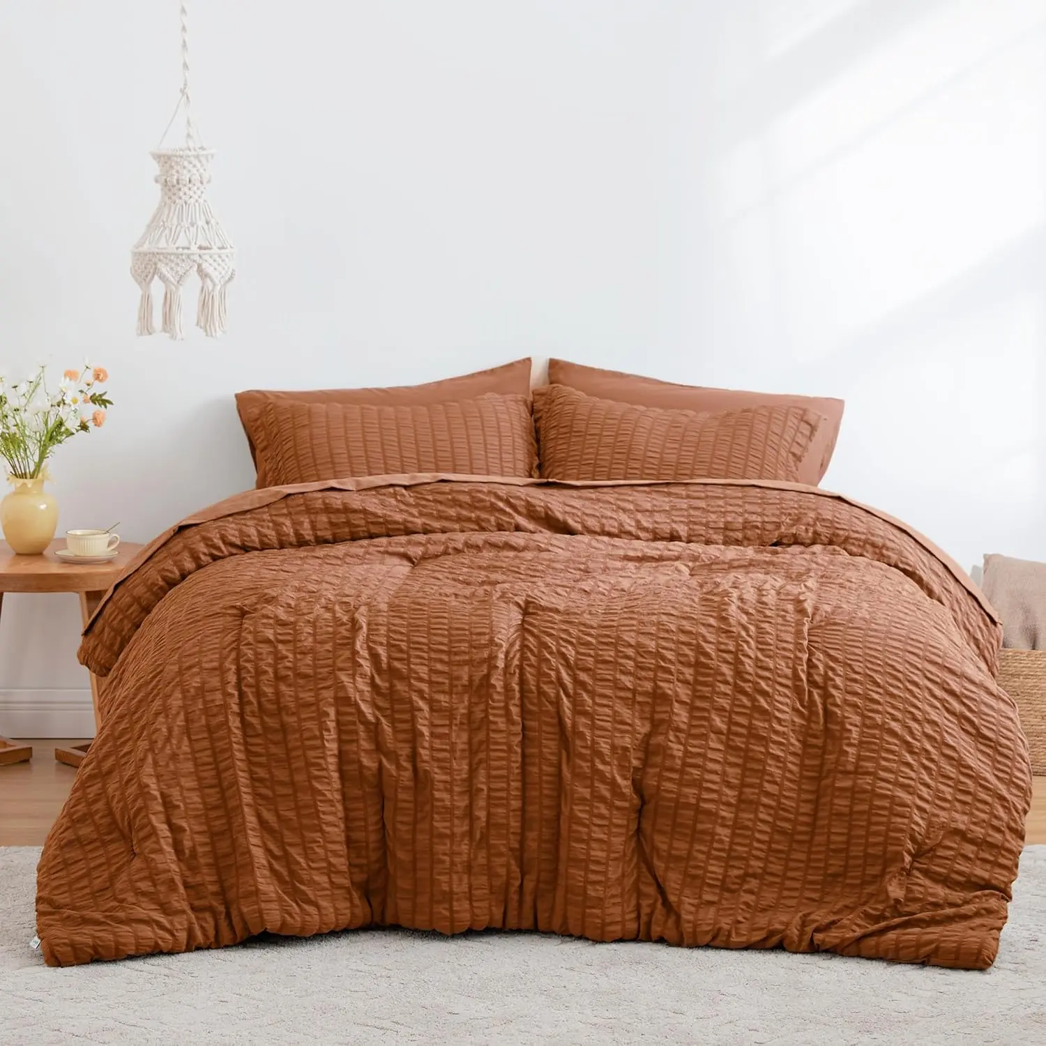 ·Exquisite Seersucker Design - This king comforter set is designed with textured seersucker, slightly pleated to bring vivid and three-dimensional wave visual effect, adding a sense of romance to your bedroom and making you fall in love with this design at first sight. The hidden patchwork design ensures that the filling stays in place and prevents shifting or clumping after washing.