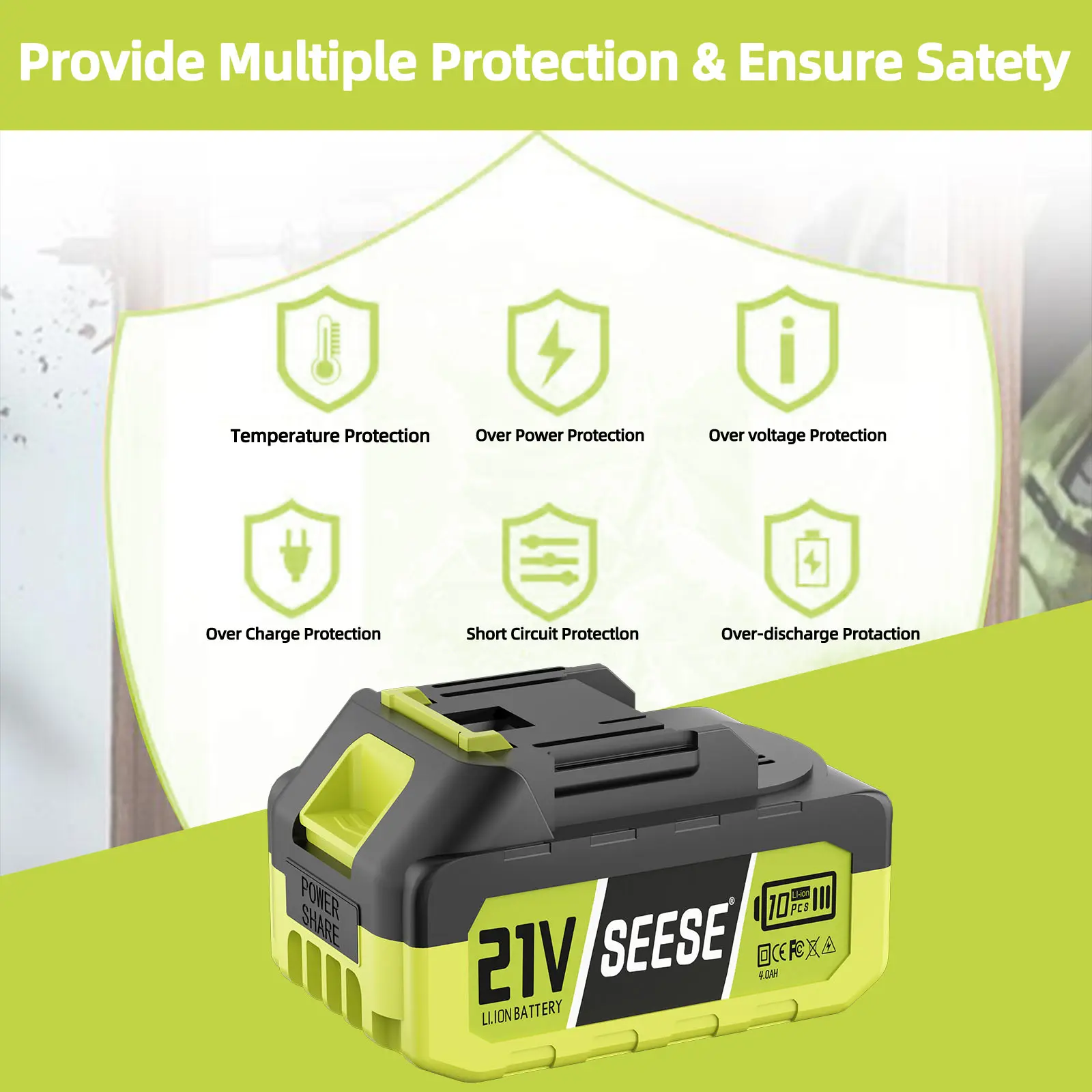 5. SEESE 21V Max Lithium Battery Pack Compatible with SEESE 21V Cordless Power Tools (1 Pack 21V Battery) Works with SEESE Blower Car Washer Chainsaw and Other Power Tools