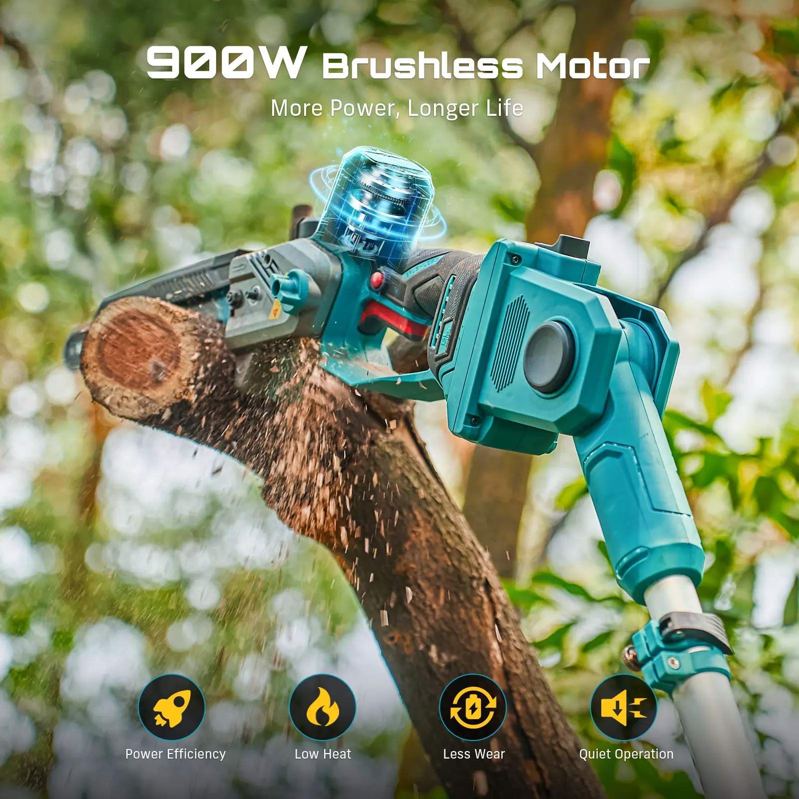 900W BRUSHLESS MOTOR – MORE TORQUE, LESS NOISE: Featuring an advanced brushless motor, the SEESII electric chainsaw delivers greater power efficiency and longer tool life. It easily cuts through dense wood, making it the perfect cordless tree cutter for demanding pruning or cutting tasks