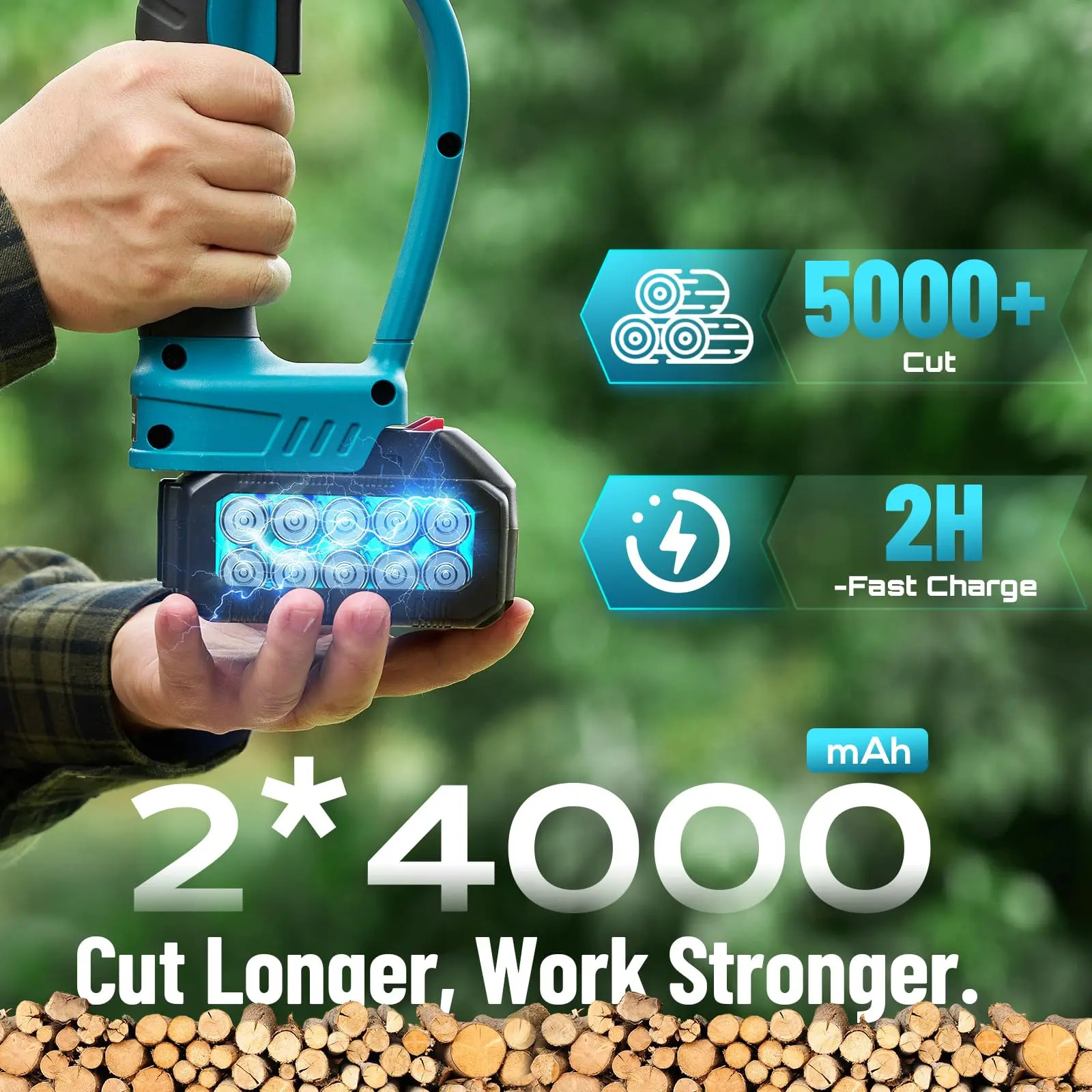 ·【2 x 4.0Ah Batteries for Extended Use】Equipped with two 21V 4000mAh batteries—twice the capacity of most competitors—offering up to 6-8 hours of continuous use. Tackle your pruning tasks without interruptions or worrying about running out of power