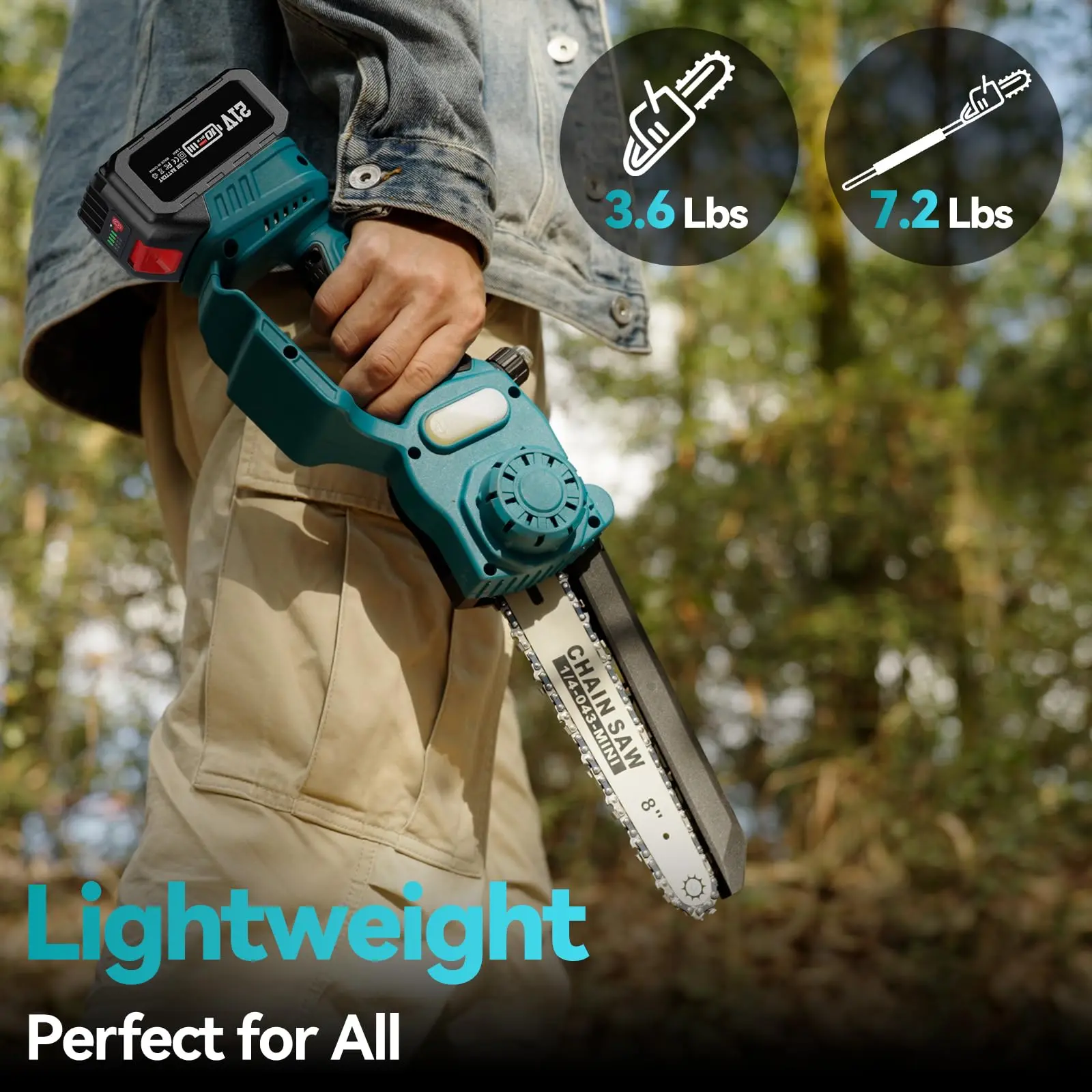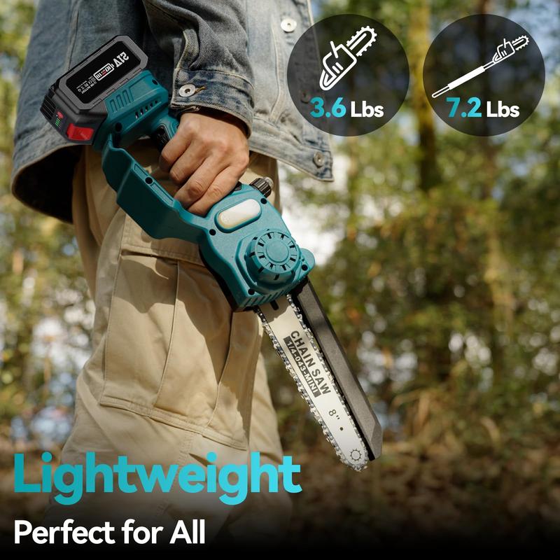 ·【Lightweight and User-Friendly - Perfect for All】Seesii mini chain saw is designed to be lightweight and user-friendly, weighing only 3.6lb as a handheld chainsaw (30% the weight of a bulky gas chainsaw). When converted into a pole chainsaw, it weighs just 7.2lb. It is specifically crafted with ease of use in mind, making it suitable for everyone, including women and the elderly.