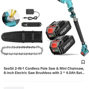 ·【Unlock the Power of Versatility with Seesii 2-IN-1 mini cordless pole saw】Experience the ultimate value for your money with Seesii electric pole saw. It's like getting two powerful machines for the price of one! Our latest cordless pole saws for tree trimming comes with an extension pole, enabling effortless trimming of high branches with precision and ease. It can be freely changed between a mini handheld chainsaw and a battery pole saw.