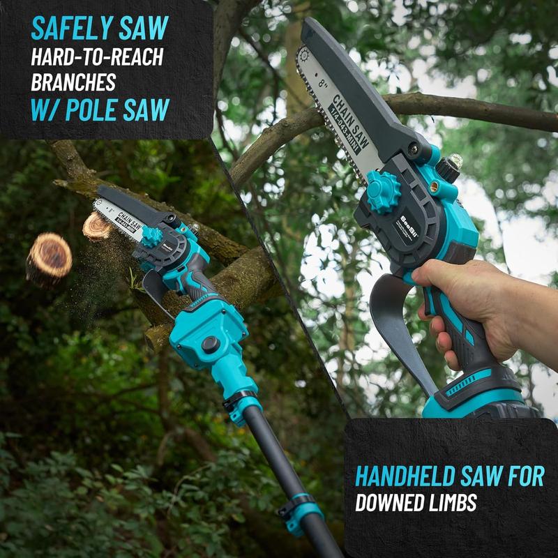 ·Versatile 2-in-1 Design: Seesii 2-in-1 pole saw functions as both a mini chainsaw and a pole saw, making it perfect for all your pruning and gardening needs