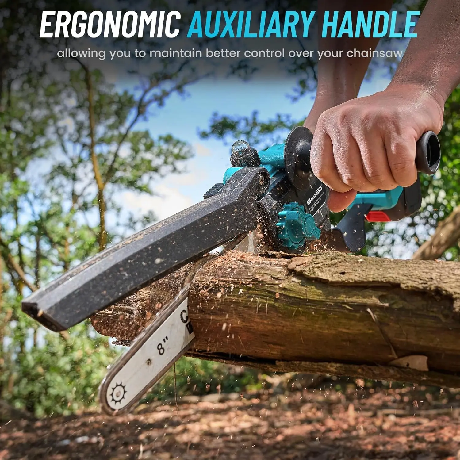 Seesii mini chainsaw features an innovative ambidextrous design that ensures comfort and ease of use for both left-handed and right-handed individuals. No more awkward handling—just a seamless experience for everyone!