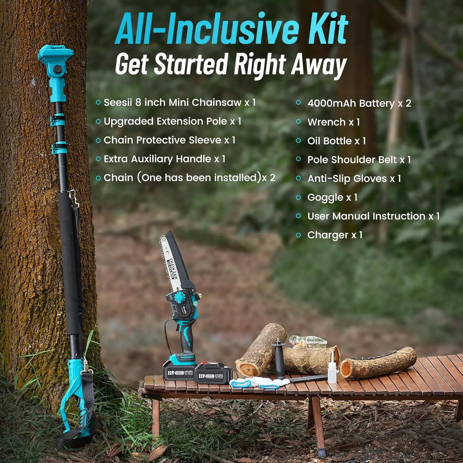 ·Lightweight & Portable: Weighing just 3.8 lbs, this saw is easy to maneuver, while the complete setup with the pole is 7.2 lbs. Ideal for professional landscapers and homeowners, Seesii pole saw is a great choice for those seeking a battery chainsaw option