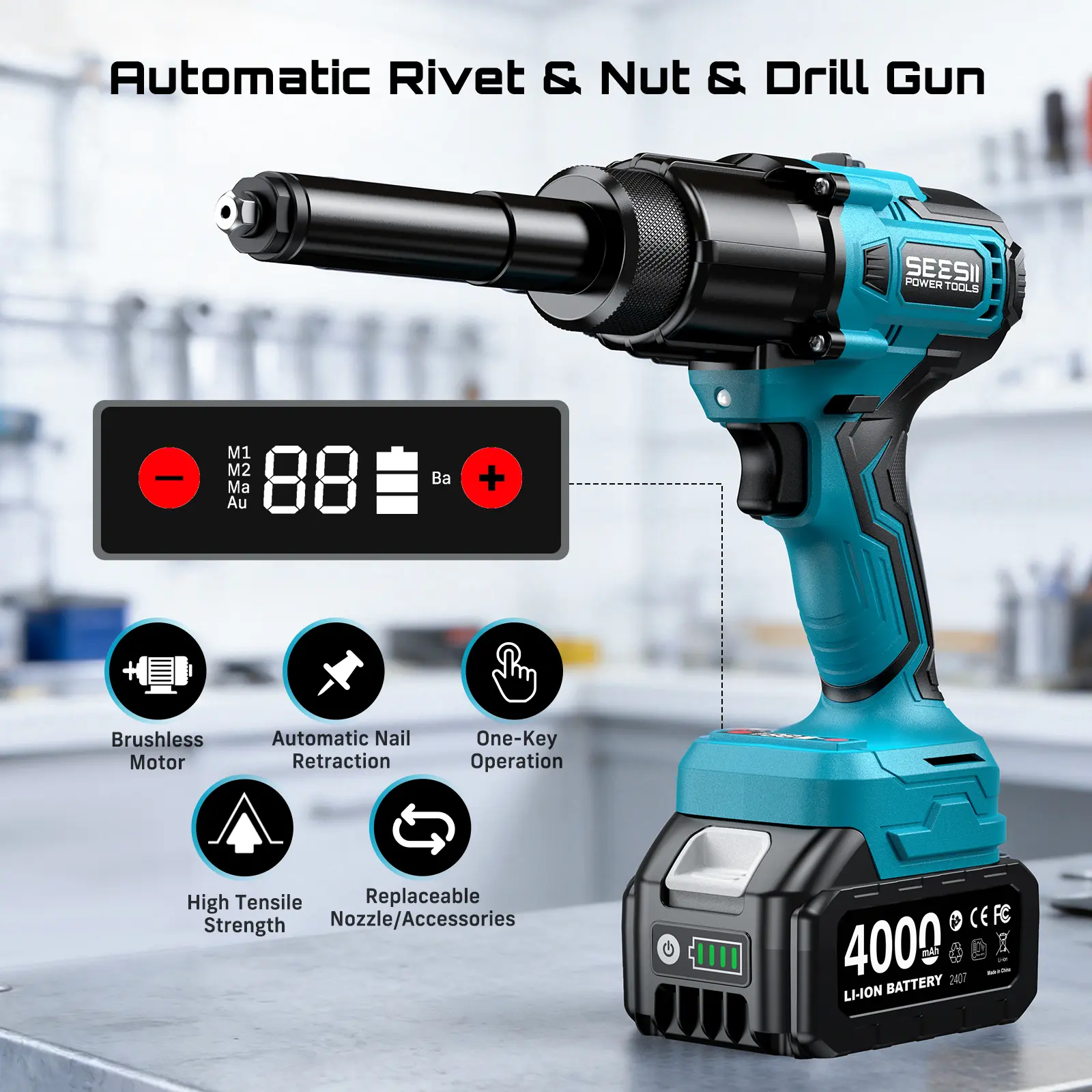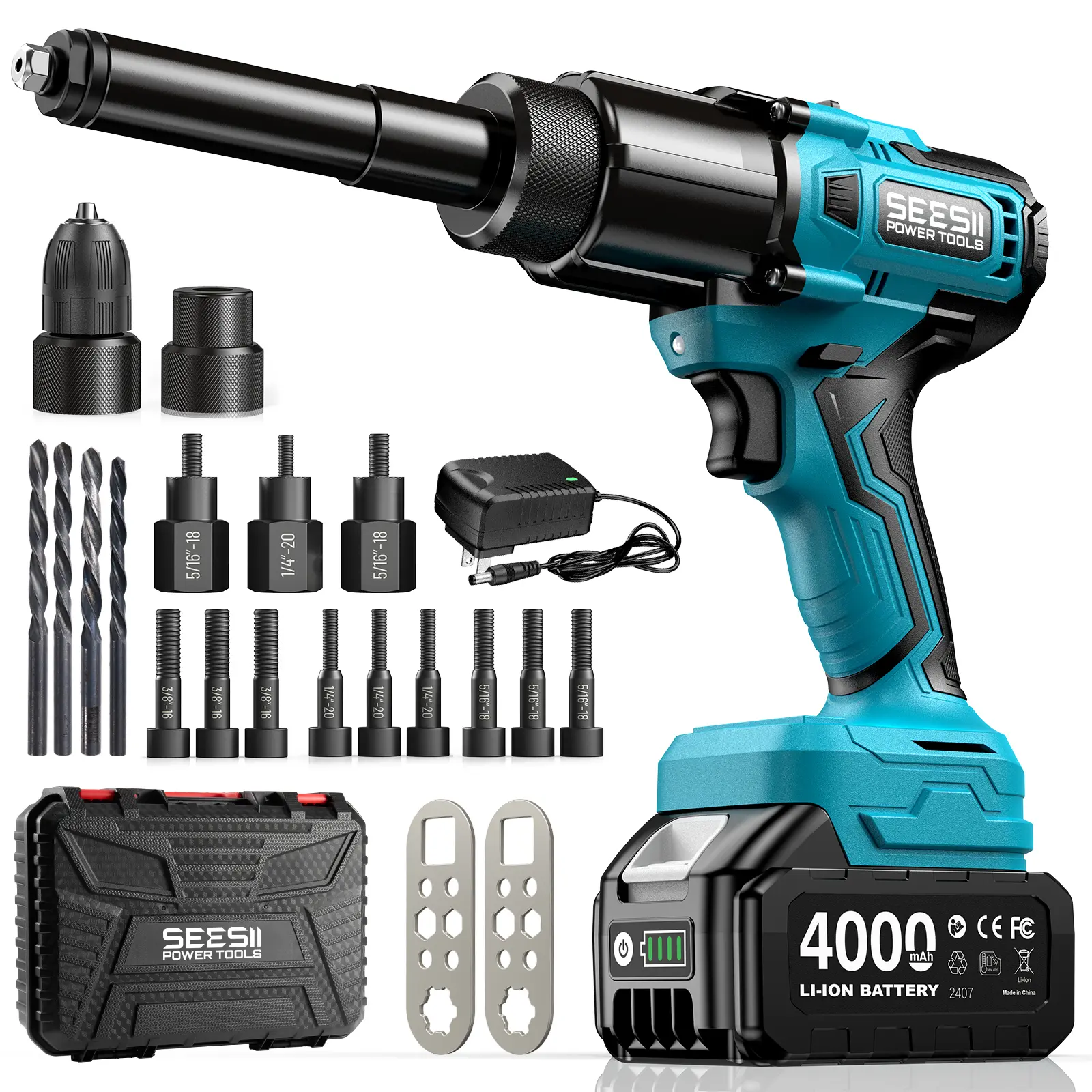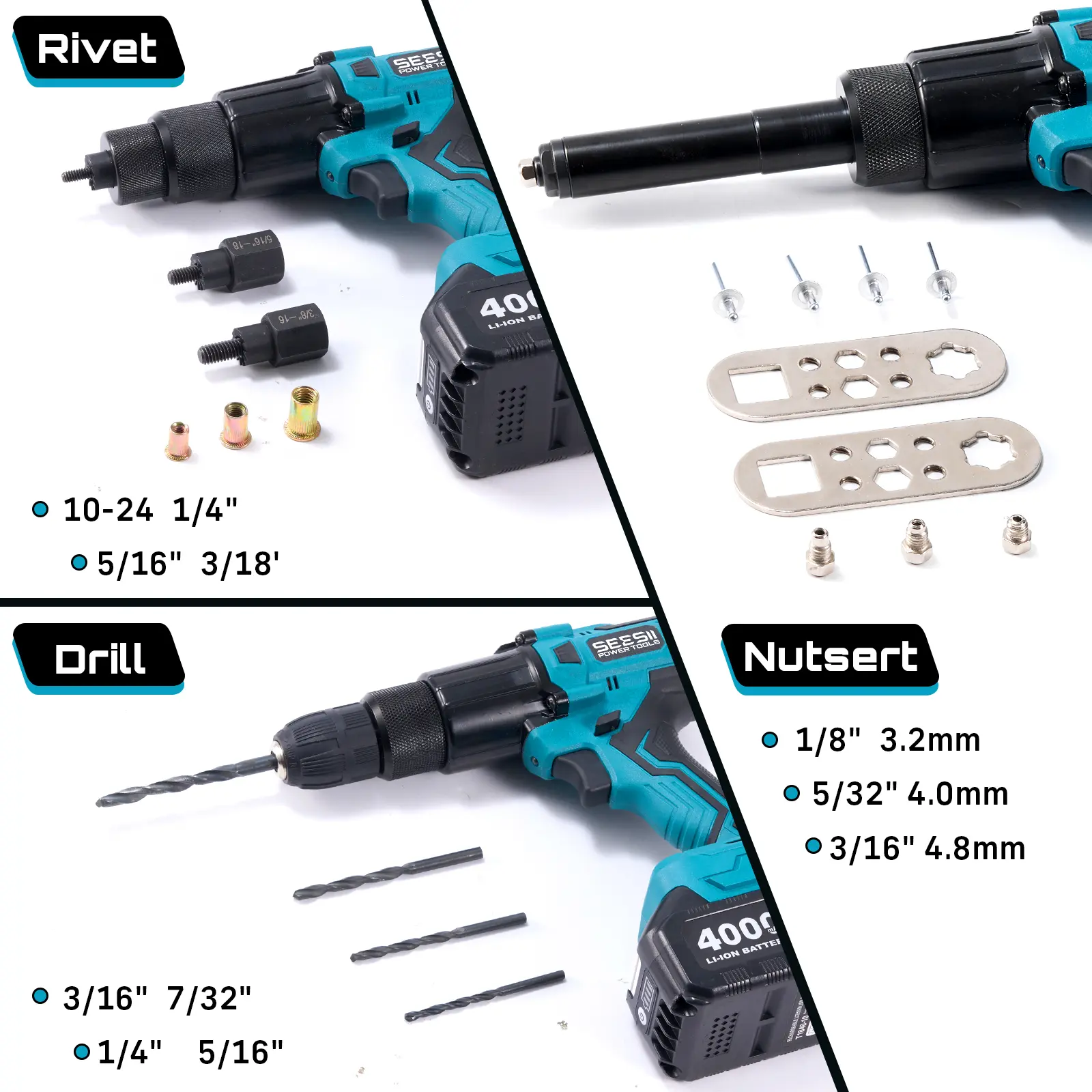 ·5200Mah Large Capacity Battery & Charger: Threaded rivet tool kit equipped with high power rechargeable battery of long-lasting performance. Fast charger with LED power indicator. With over-voltage protection, over-current protection, and over-temperature protection. Not only can prolong the service life of the battery but also the safety is excellent. You don't need to worry about battery life when you use it outdoors for a long time. Compatible with a large number of pastoral batteries.