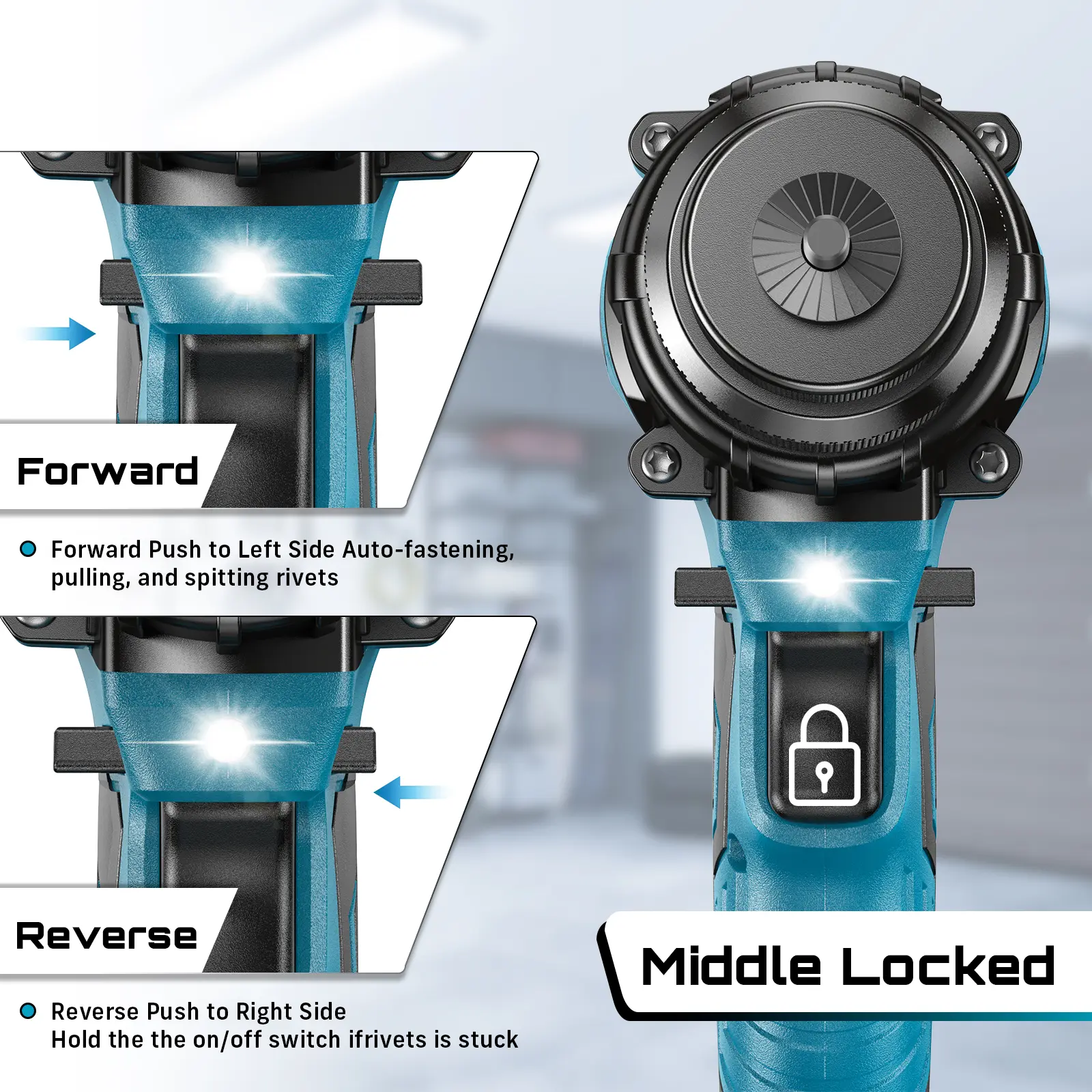·Portable & Labor Saving: Press the trigger, and the cordless rivet tool will automatically rivet and eject the mandrel, reducing hand and forearm strain, an ergonomically designed handle for increased comfort. Not have to drag hoses all around, No cable restrictions, you just need to plug in the battery, you can use it anywhere; it is more convenient than the ordinary plug-in rivet gun. Even in rooms without electricity, or in courtyards. It can help you to complete your work perfectly.