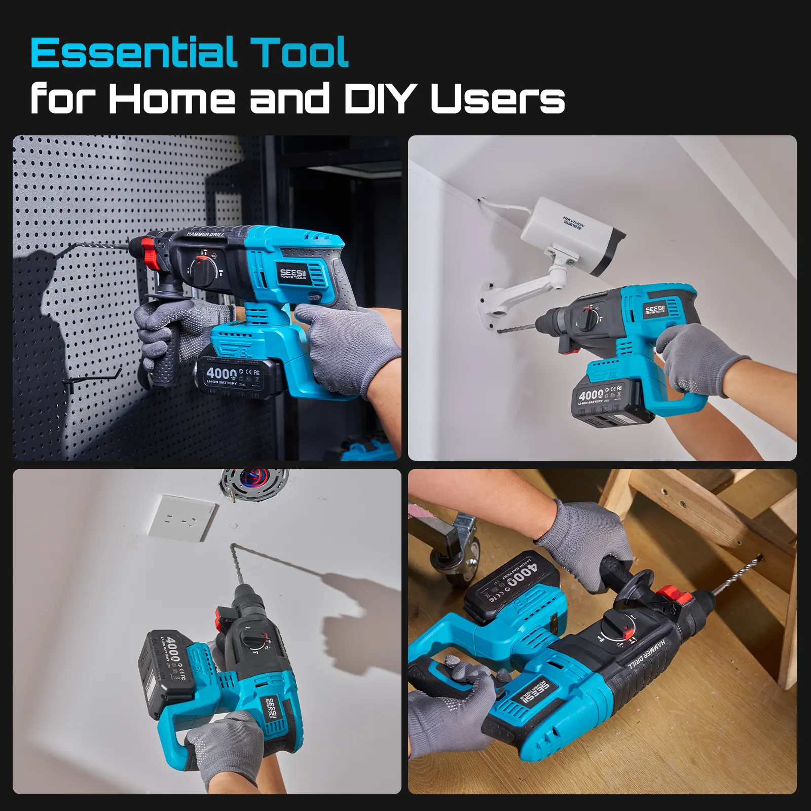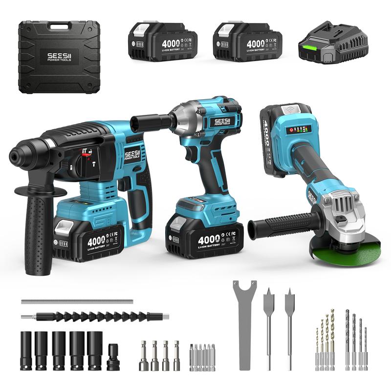 SEESII 3-Piece Cordless Tool Set: Rotary Hammer, Impact Wrench & Angle Grinder