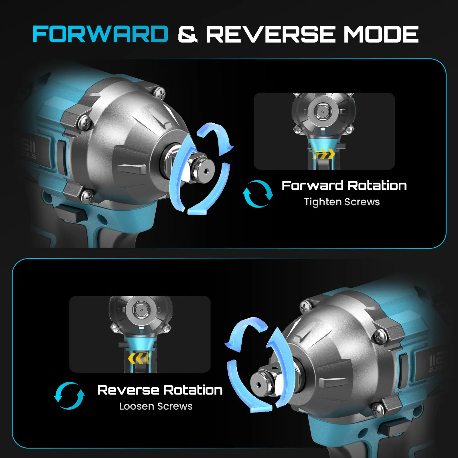Intelligent safety protection: Built-in chip prevents overcurrent/overvoltage/overheating (70% fault reduction); auto-stop avoids over-tightening damage; 10s auto-shutdown extends motor life by 3x; cooling fan for marathon tasks.