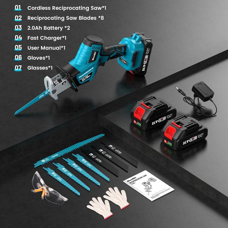 ·Extended Battery Life for Long Projects: With 2 x 2.0Ah batteries, you'll enjoy extended usage time. The fast-charging feature means you're always ready to go, minimizing downtime. This reciprocating saw cordless ensures you can complete your projects without interruptions