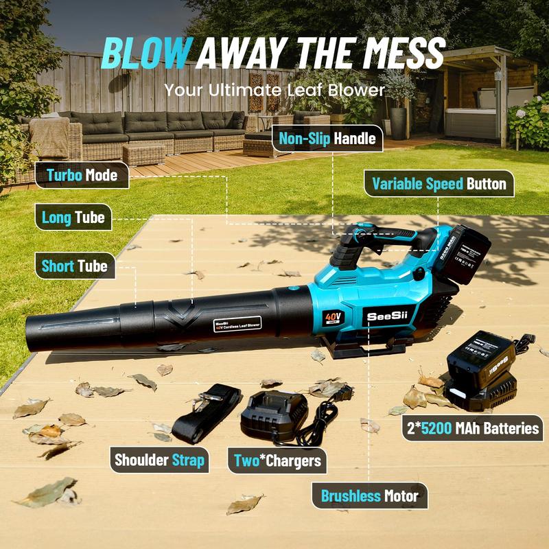 ¡Efficient Power & Durability with Brushless Motor: Seesii leaf blower features a brushless motor, delivering superior power and efficiency. Compared to traditional brushed motors, the brushless design operates more quietly, consumes less energy, and offers a longer lifespan. Its impressive performance makes it easy to handle various tasks, from clearing wet leaves to removing grass clippings. The brushless motor ensures efficient, reliable, and long-lasting yard maintenance