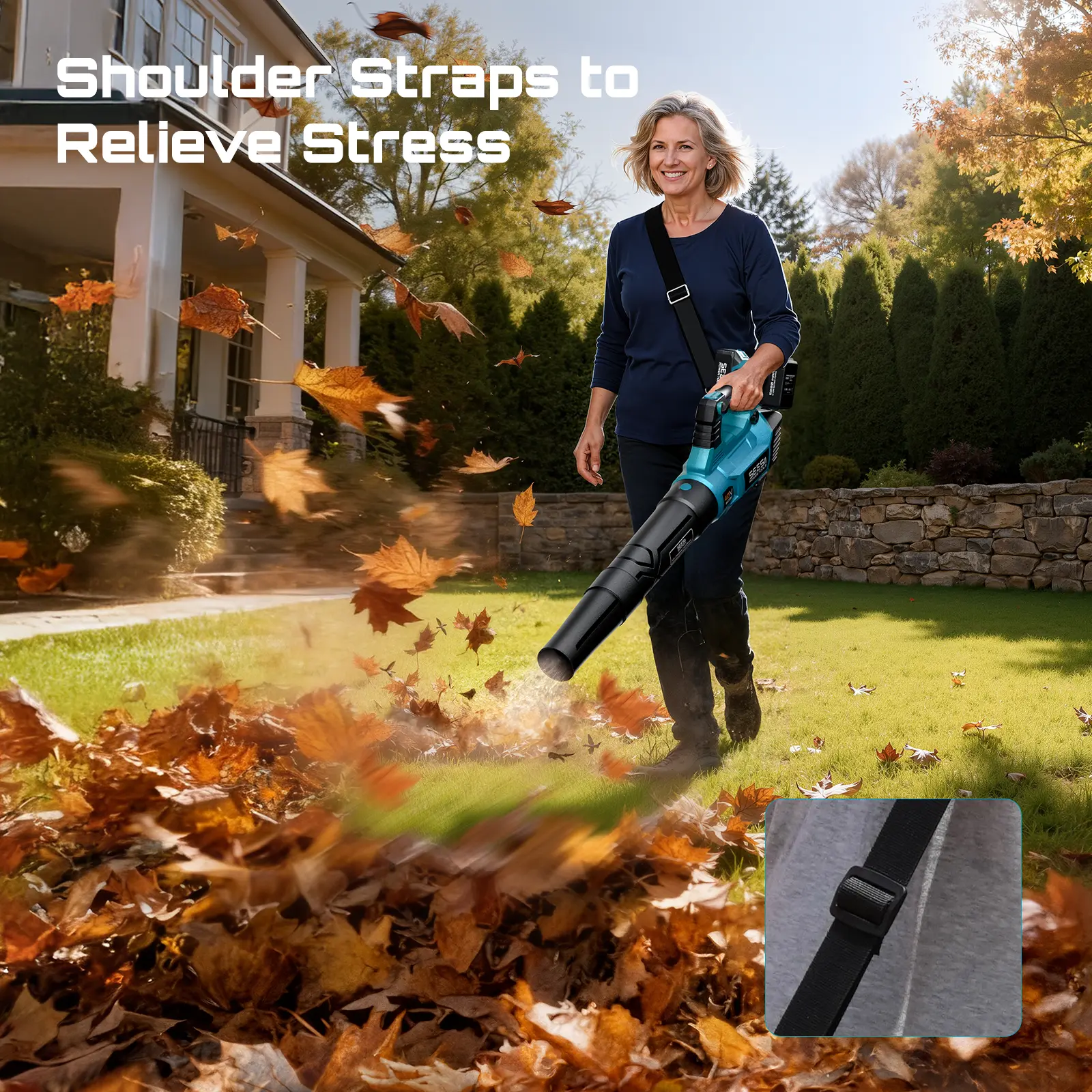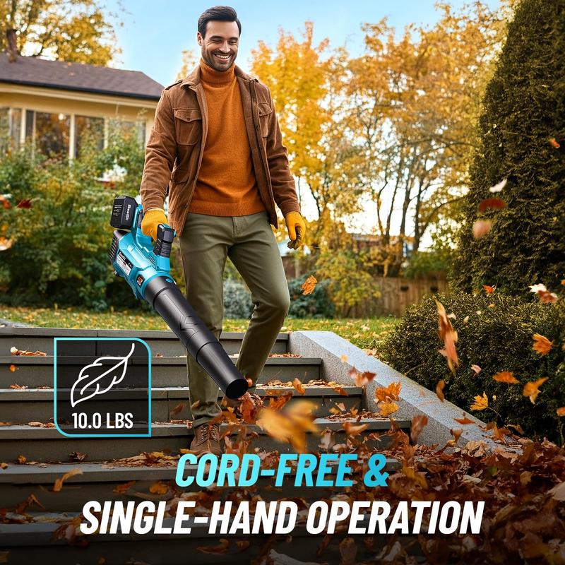 ¡Versatile 40V Electric Leaf Blower for All Seasons: This 40V leaf blower is specifically designed to handle a variety of outdoor cleaning tasks. Ideal for autumn leaf clearing, lawn maintenance, snow removal, and more, it boasts powerful airflow that easily blows away heavy, wet leaves, clears debris and dust from lawns, and even sweeps away small stones. Ideal for gardens, driveways, and paths, this blower clears debris quickly, saving time and keeping your space tidy year-round