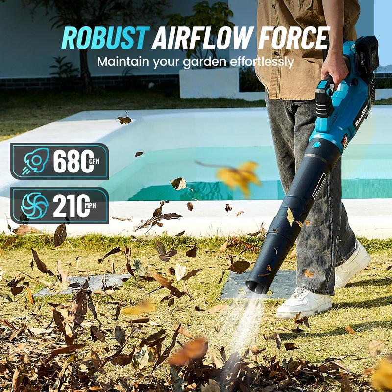 ¡Efficient Clearing with Powerful Airflow: Seesii leaf blower cordless is designed to deliver impressive performance with up to 680 CFM and wind speeds of 210 MPH, making it ideal for tackling a wide range of outdoor cleaning tasks. From removing wet leaves to clearing dust and debris, its strong airflow allows for quick and thorough cleanup. The blower's powerful output makes yard, driveway, or garden maintenance effortless, saving time while delivering professional results