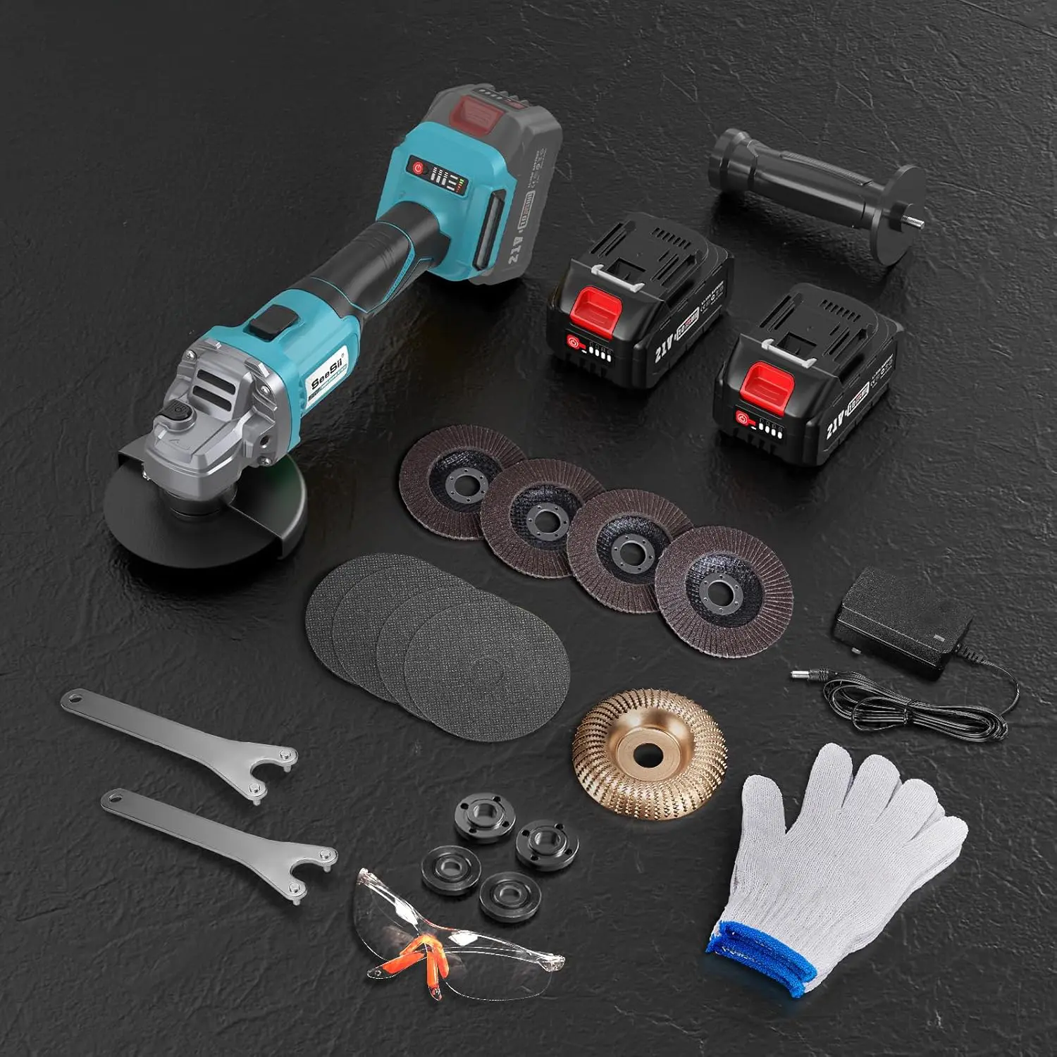 ·Extensive & Complete Accessories:A complete set of high-quality power tools can help you save a lot of time and troubles. Our cordless grinderes set includes:1x 4-1/2-Inch grinders power tools;2x 4.0ah battery;1x fast charger;4x cutting wheel; 4x flap wheel;1x wood carving wheel;2x wrench;1x safety gloves;1x safety glasses. Just need a simple Seesii power angle grinders set to get many power tools and accessories you need