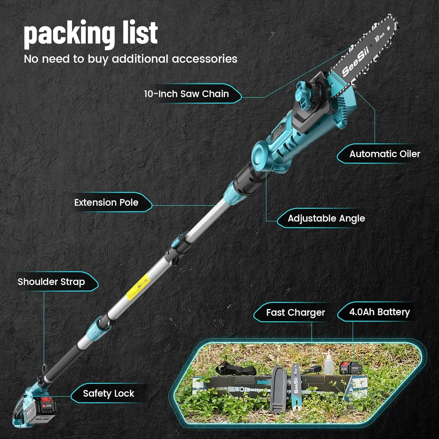 Whether you're trimming branches in the backyard or maintaining your garden, Seesii Pole Saw the perfect tool for the whole family to enjoy. Designed for users of all experience levels, it makes yard work safer, easier, and more efficient—no matter who’s using it.ole saw
