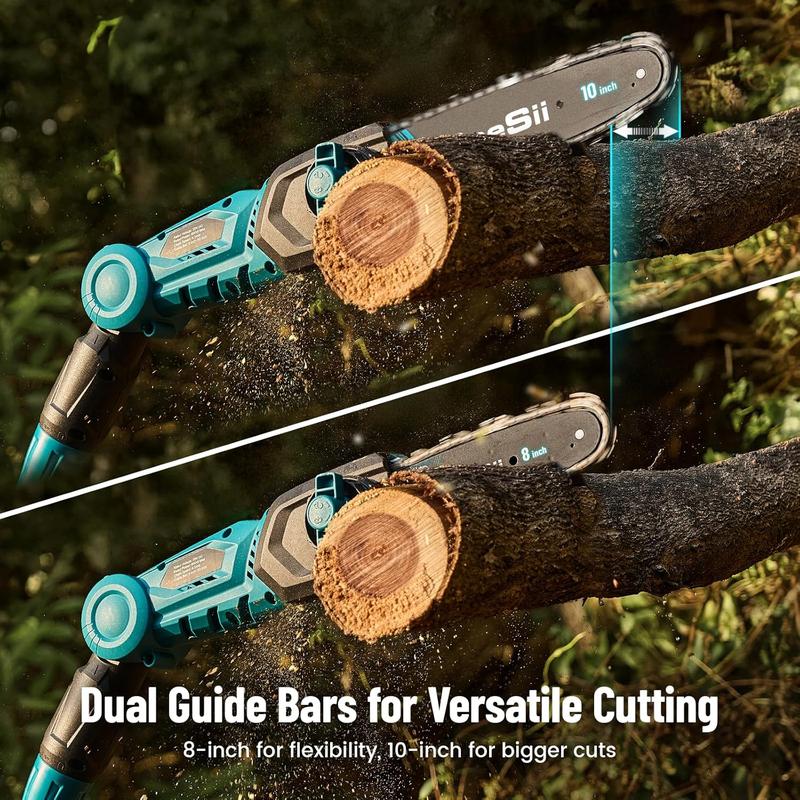 ·Reach New Heights with Ease : Tired of risky climbs? With an extendable pole that reaches up to 9 feet, Seesii powerful chainsaw lets you effortlessly trim high branches—no ladder required. Say goodbye to unsafe ladders and hello to efficient tree trimming with ease