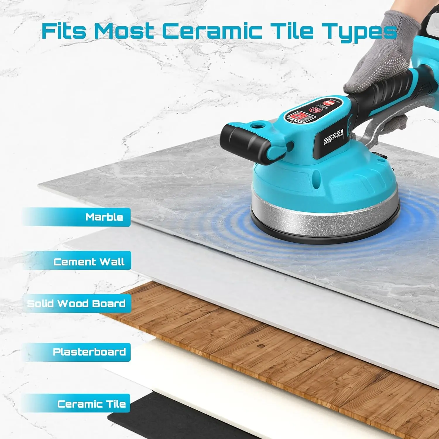 The Seesii KP-160B goes beyond tile leveling—use it to lift large glass, metal panels, and even for massaging, making it a versatile tool for various tasks.
