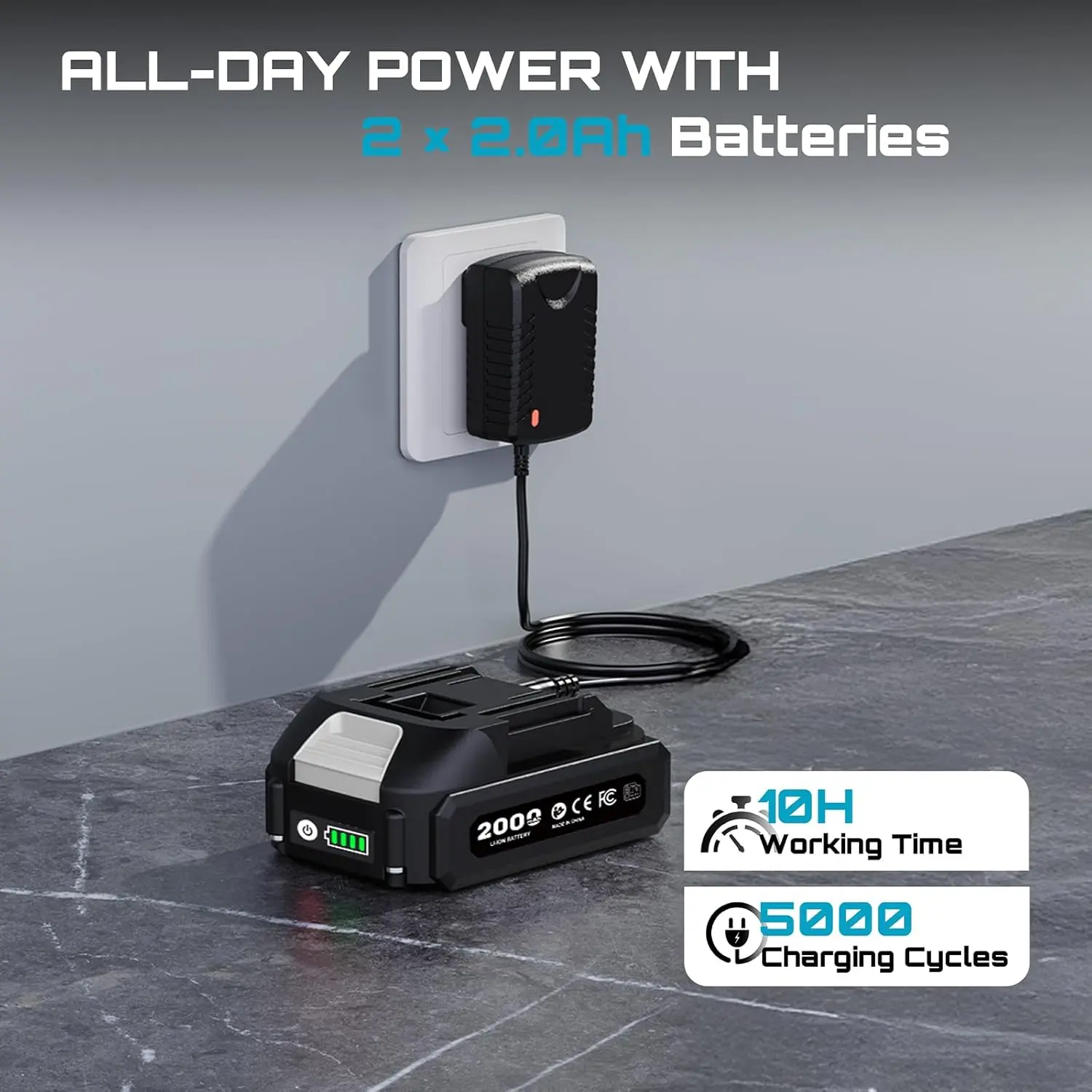 Long Battery Life: Equipped with two high-capacity batteries that offer 4 to 6 hours of continuous use. This allows you to work without interruption. You can charge one battery while using the other, ensuring you never run out of power. It makes this an efficient cordless tile vibration tool.