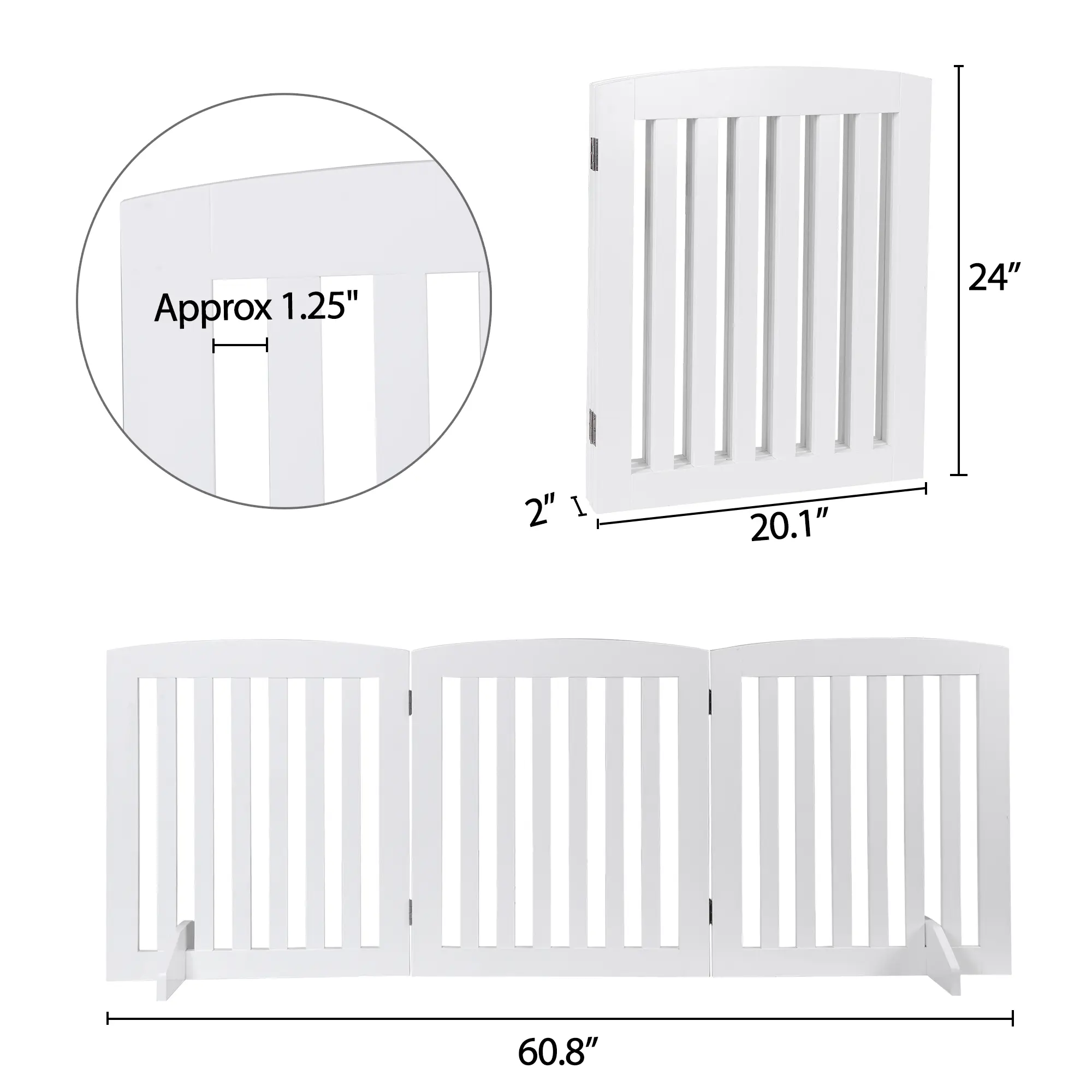 Functional & Stylish Pet Gate: This decorative pet gate offers an effective solution for keeping pets contained while complementing your home décor. Its 24/36-inch height allows adults to easily step over when needed.