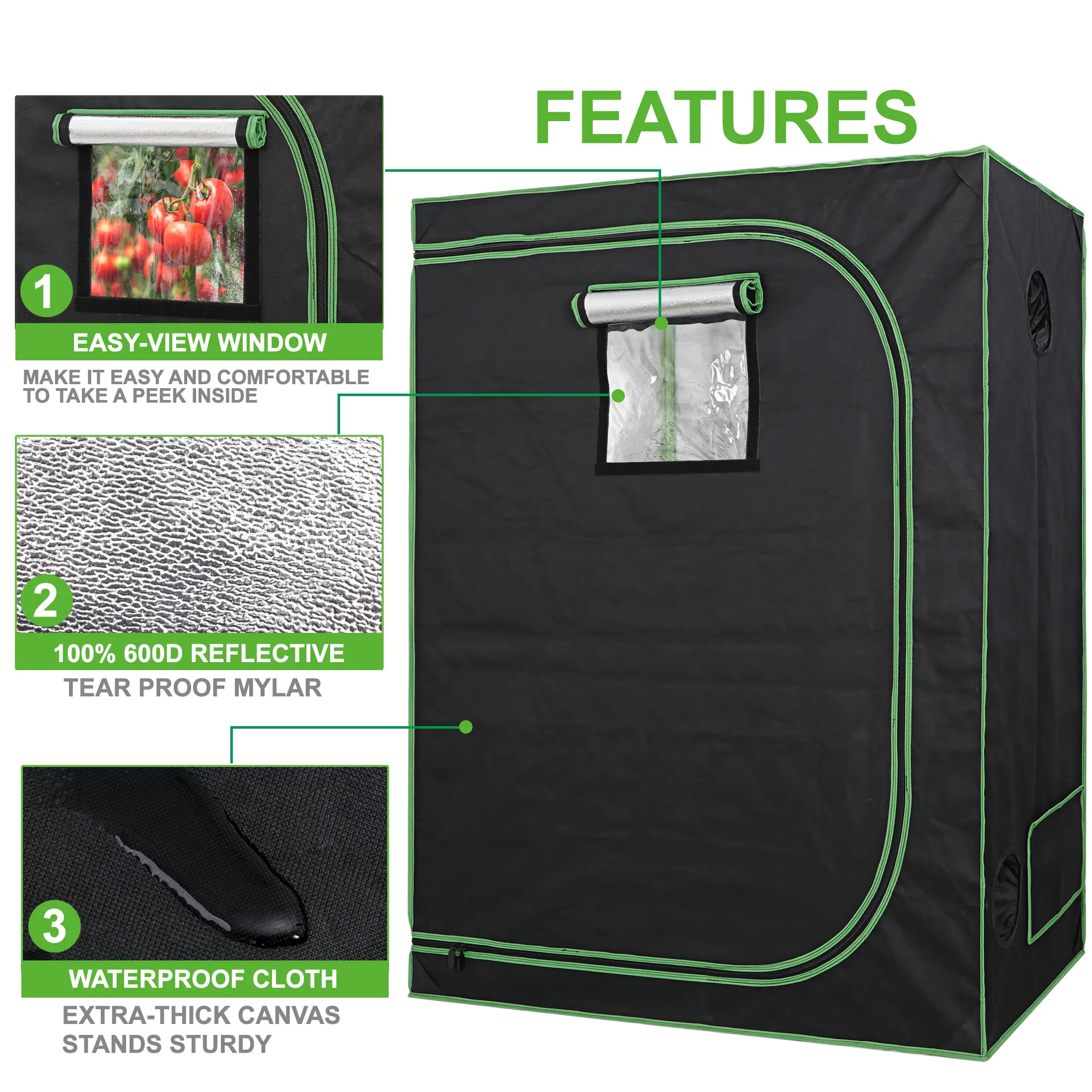 Reflective Mylar Lining & Airtight Zipper – Enhances light reflection to boost plant growth efficiency, while a durable, high-quality zipper with black light-blocking lining maintains a sealed, dark environment for optimal results.