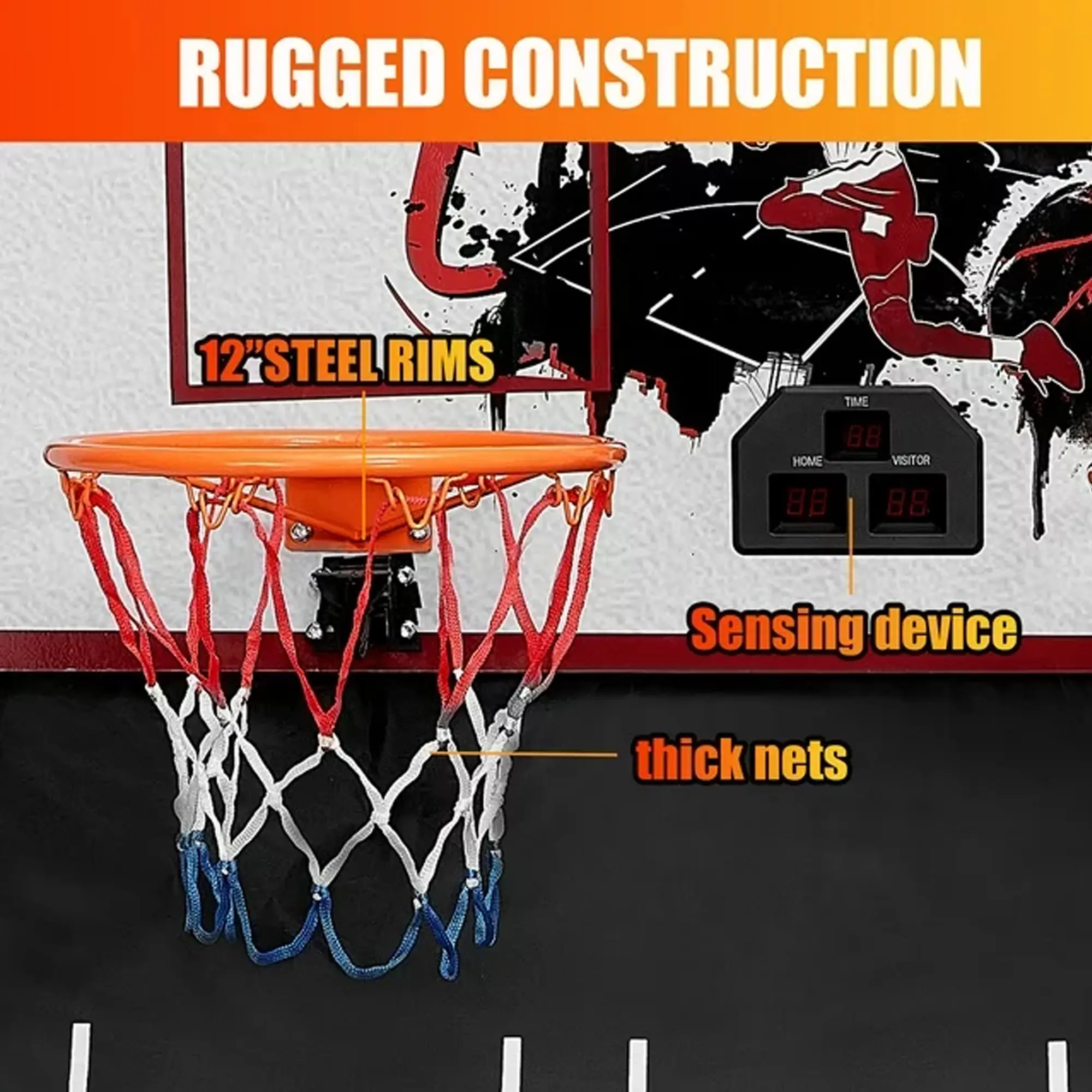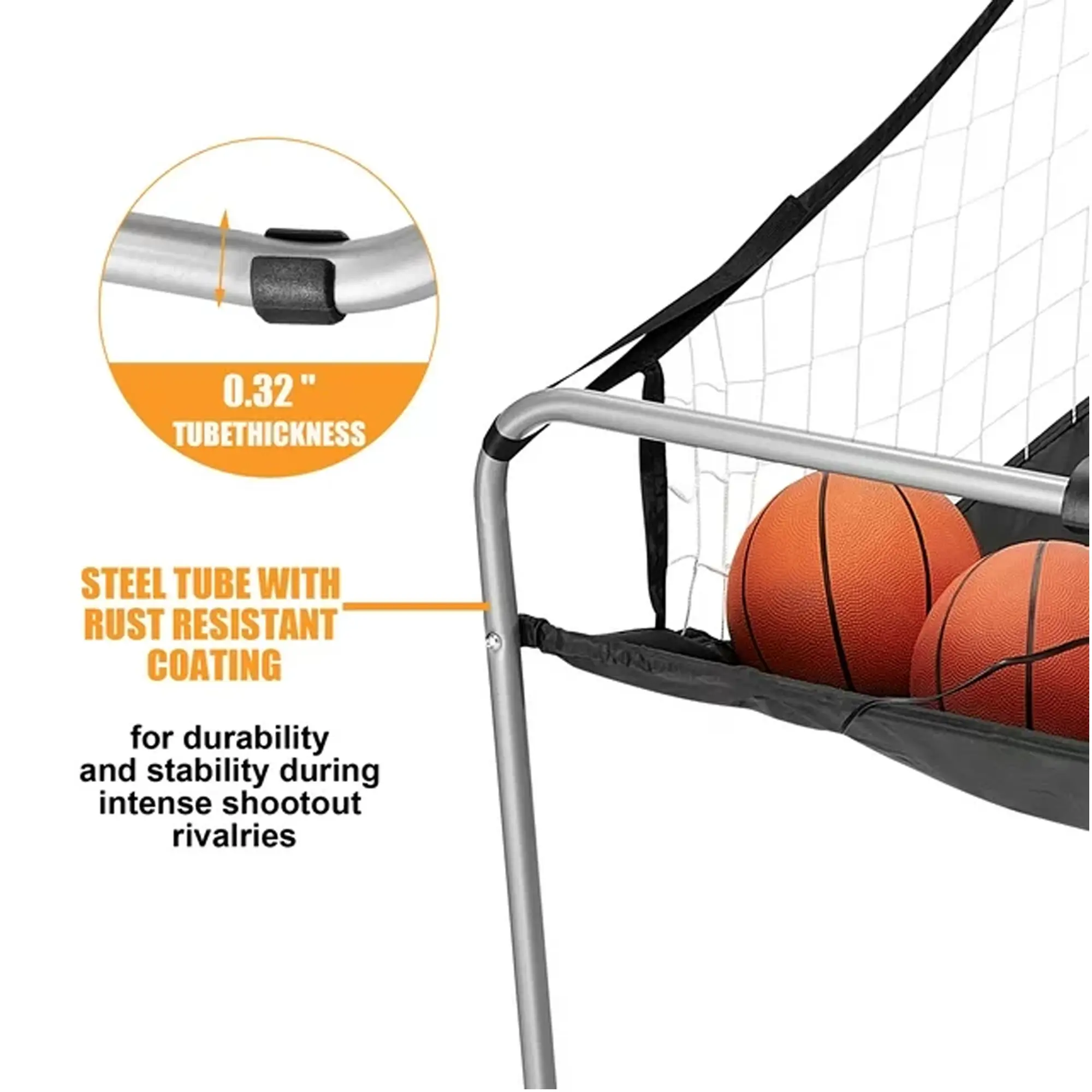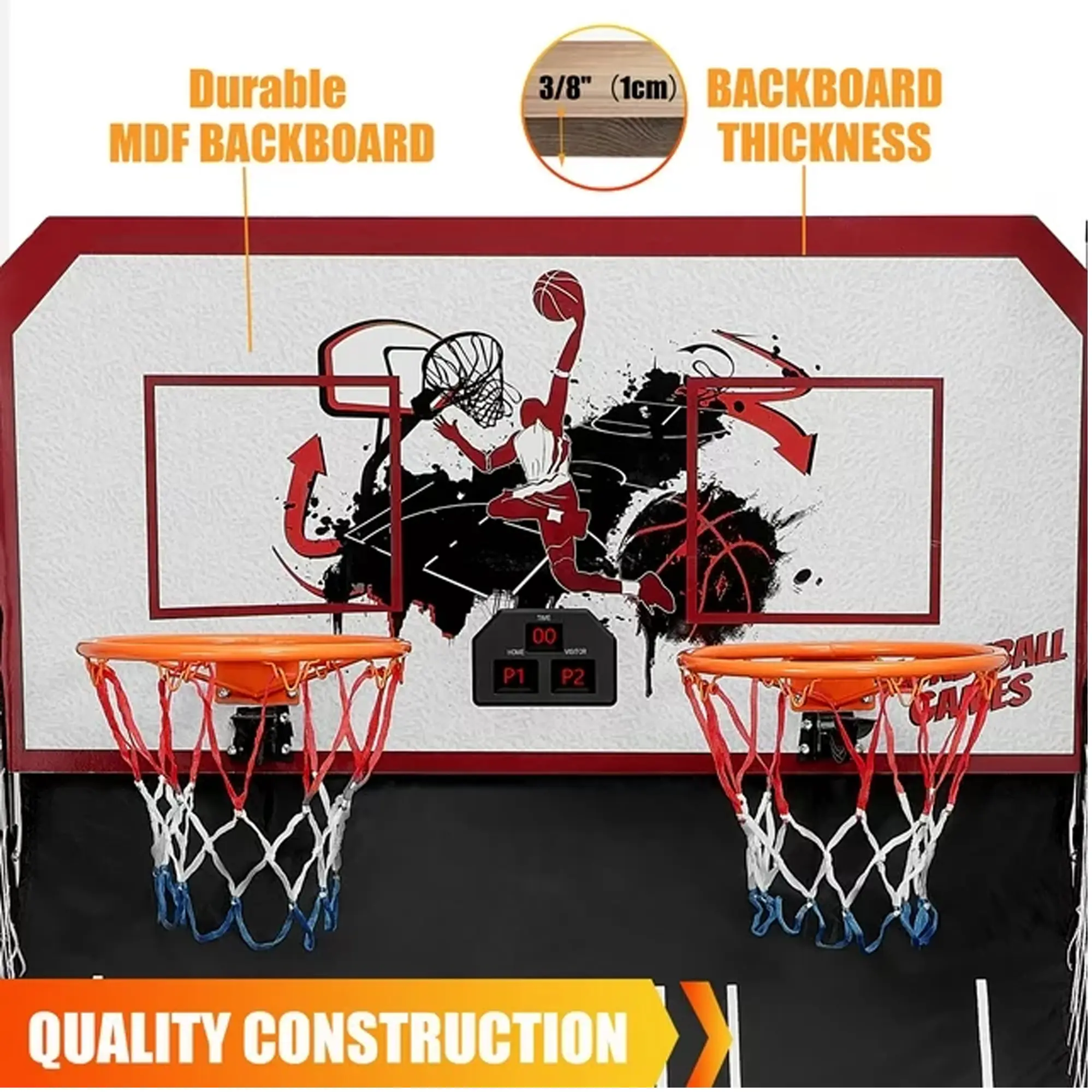Challenge a friend and play head-to-head with two sturdy steel rims and durable nylon nets.