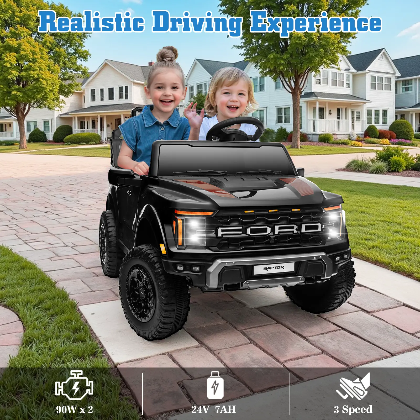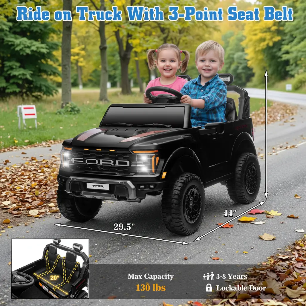 This officially licensed 24V Ford F-150 Raptor combines power, safety, and fun in one incredible ride.