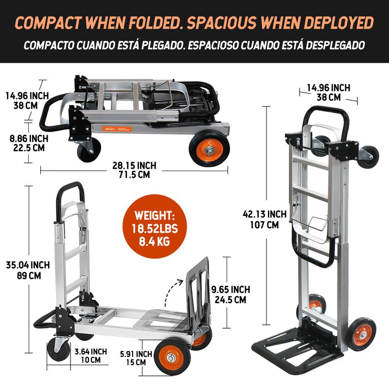 Carro Plegable de Aluminio 2 en 1 | Soporta hasta 800 lb | Ideal para Mudanzas, Almacén y Uso Industrial #CarroPlegable #HandTruck2en1 #HerramientasDeCarga #MudanzasFáciles #TikTokShopUSA