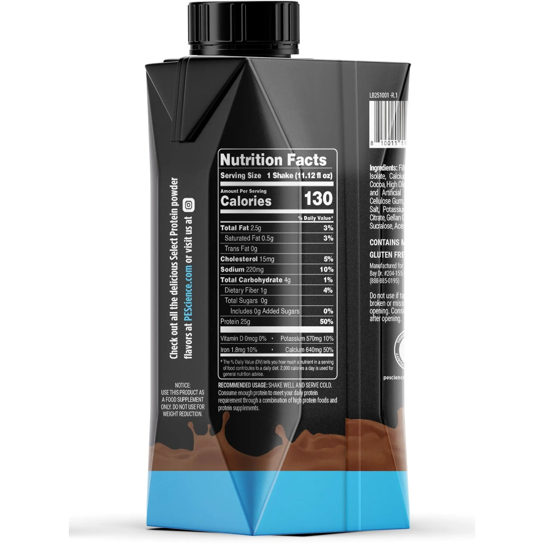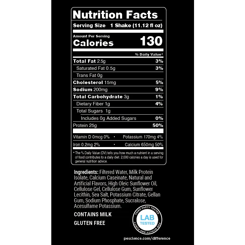 Meet the easiest way to enjoy our famous Select Protein: a smooth, ready to drink (RTD) shake with a whey + casein blend for sustained, satisfying protein. Each bottle delivers 25g of complete protein with just 0–1g of sugar and is extremely low in lactose, so it’s easy on your stomach and your routine.